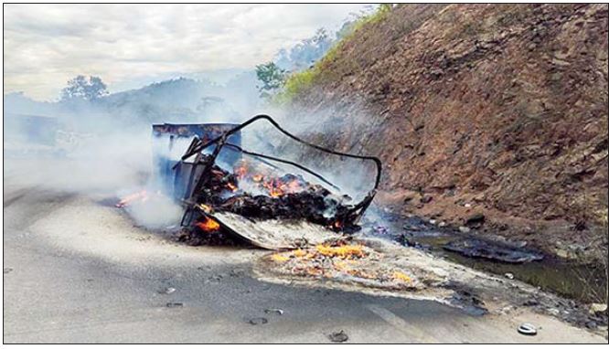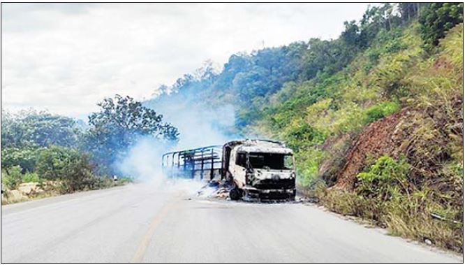 ကော့ကရိတ်မြို့နယ်၊ တောနော်ရေတံခွန်အနီး၌ အကြမ်းဖက်အဖွဲ့များက မော်တော်ယာဉ်များအား မီးရှို့ဖျက်ဆီး