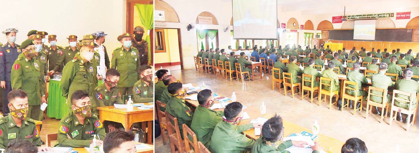 ဦးစွာ နိုင်ငံတော်စီမံအုပ်ချုပ်ရေး ကောင်စီဒုတိယဥက္ကဋ္ဌ ဒုတိယတပ်မတော်ကာကွယ်ရေးဦးစီးချုပ်၊ ကာကွယ်ရေးဦးစီးချုပ်(ကြည်း)နှင့် အဖွဲ့ဝင်များသည် တပ်မတော်(ကြည်း) တိုက်ခိုက်ရေးကျောင်း(ဗထူး)ရှိ သုံးထပ်စာသင်ဆောင်၌ ခြေလျင်တပ်ရင်းမှူး၊ ခြေလျင်တပ်ခွဲမှူး၊ ခြေလျင်တပ်စုမှူး သင်တန်းသားများအား မြန်မာနိုင်ငံအမျိုးသား လူ့အခွင့်အရေးကော်မရှင်မှ သင်ခန်းစာများအား Video Conferencing ဖြင့် သင်ခန်းစာပို့ချသင်ကြားနေမှု အပါအဝင် အခြားသင်ခန်းစာများ စာတွေ့လက်တွေ့ လေ့ကျင့်သင်ကြားပေးနေမှုများ၊ သင်တန်းခန်းမဆောင်များ၊ ကျောင်းစာကြည့်တိုက်နှင့် ကျောင်းသမိုင်းပြခန်း စသည်တို့အား လိုက်လံကြည့်ရှုစစ်ဆေးပြီး လိုအပ်သည်များ မှာကြားသည်။