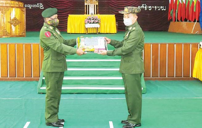 ယင်းနောက် နိုင်ငံတော်စီမံအုပ်ချုပ်ရေး ကောင်စီဒုတိယဥက္ကဋ္ဌ ဒုတိယတပ်မတော် ကာကွယ်ရေးဦးစီးချုပ်၊ ကာကွယ်ရေးဦးစီးချုပ်(ကြည်း) ဒုတိယဗိုလ်ချုပ်မှူးကြီး စိုးဝင်းက သင်တန်းသားများနှင့် နည်းပြအရာရှိများအတွက် စားသောက်ဖွယ်ရာများပေးအပ်ရာ ကျောင်းအုပ်ကြီးက လက်ခံရယူသည်။ အလားတူ ဒုတိယဗိုလ်ချုပ်ကြီး အောင်ဇော်အေးက သင်တန်းသားများအတွက် အားကစားပစ္စည်းများကို ပေးအပ်ရာ သင်တန်းသားများကိုယ်စား ဒုတိယကျောင်းအုပ်ကြီးက လက်ခံရယူသည်။