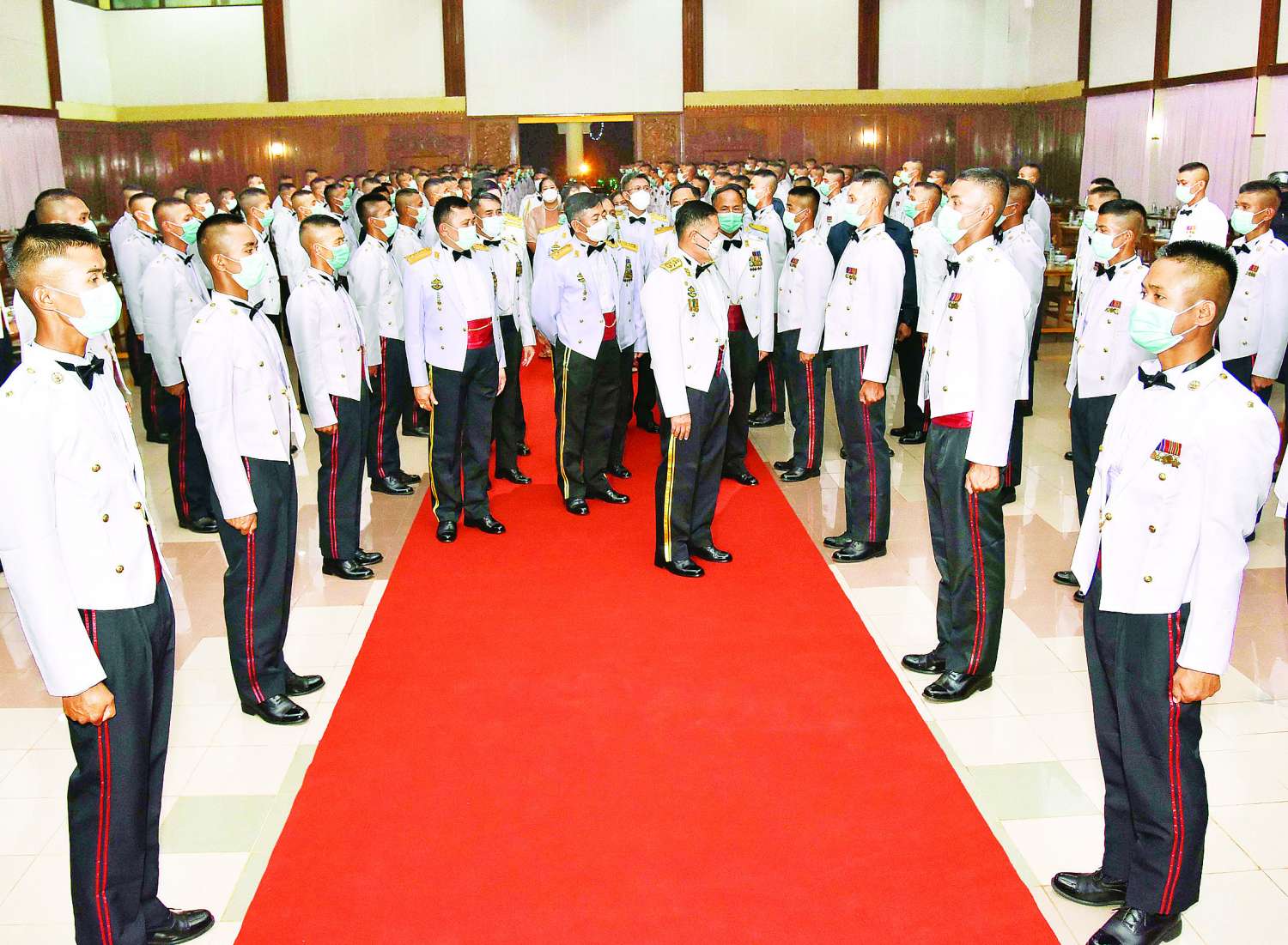 ဦးစွာ နိုင်ငံတော်စီမံအုပ်ချုပ်ရေးကောင်စီ ဒုတိယဥက္ကဋ္ဌ ဒုတိယတပ်မတော်ကာကွယ်ရေးဦးစီးချုပ် ကာကွယ်ရေးဦးစီးချုပ်(ကြည်း) ဒုတိယ ဗိုလ်ချုပ်မှူးကြီး သရေစည်သူ စိုးဝင်းနှင့် အဖွဲ့ဝင်များသည် ကျောင်းဆင်းအရာရှိများအား ရင်းရင်းနှီးနှီး လိုက်လံနှုတ်ဆက်သည်။ ထို့နောက် နိုင်ငံတော်စီမံအုပ်ချုပ်ရေး ကောင်စီဒုတိယဥက္ကဋ္ဌ ဒုတိယတပ်မတော်ကာကွယ်ရေးဦးစီးချုပ်ကာကွယ်ရေး ဦးစီးချုပ်(ကြည်း) ဒုတိယ ဗိုလ်ချုပ်မှူးကြီး သရေစည်သူ စိုးဝင်းနှင့် အဖွဲ့ဝင်များသည် သင်တန်းဆင်း အရာရှိများနှင့်အတူ ညစာကို အတူတကွသုံးဆောင်ကြသည်။