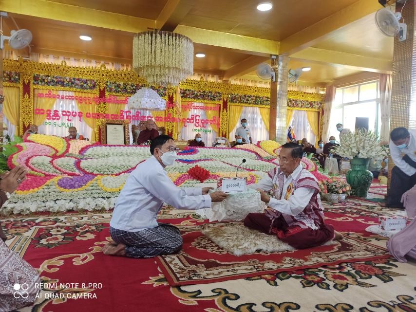 ထို့နောက် နိုင်ငံတော်ကောင်စီဝင် ဖဒိုမန်းငြိမ်းမောင်က သာသနာရေးဆိုင်ရာများ လျှောက်ထား၍ အဘိဓဇမဟာရဋ္ဌဂုရု ဘွဲ့တံဆိပ်တော်အား ထပ်ဆင့်ဆက်ကပ်လှူဒါန်းခဲ့ကြောင်း၊ ဧရာဝတီတိုင်းဒေသကြီး ဝန်ကြီးချုပ် ဦးတင်မောင်ဝင်းက ဆရာတော် ဘဒ္ဒန္တသောဘိတနှင့် သံဃာတော်များအား လှူဖွယ်ဝတ္ထုများ ဆက်ကပ်လှူဒါန်းခဲ့ကြောင်း သိရသည်။