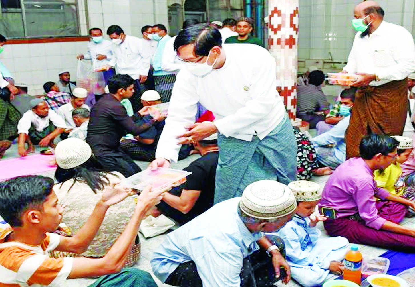 ရန်ကုန်တိုင်းဒေသကြီးအတွင်းရှိ အစ္စလာမ်ဘာသာဝင်များ၏ ရာမဒန်လမြတ်ကာလတွင် ဥပုသ်ဝင်ရောက်ကြသူများအတွက် စားသောက်ဖွယ်ရာများကို ရန်ကုန်တိုင်းဒေသကြီး ဝန်ကြီးချုပ် ဦးစိုးသိန်း၊ ရန်ကုန်တိုင်းစစ်ဌာနချုပ် တိုင်းမှူးဗိုလ်ချုပ် ညွန့်ဝင်းဆွေနှင့် တာဝန်ရှိသူများက သွားရောက်ပေးအပ်လှူဒါန်းလျက်ရှိသည်။