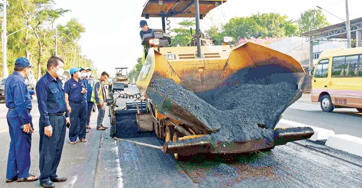 ရန်ကုန်တိုင်းဒေသကြီး စည်ပင်သာယာရေးဝန်ကြီး ရန်ကုန်မြို့တော်စည်ပင်သာယာရေး ကော်မတီဥက္ကဋ္ဌ (မြို့တော်ဝန်) ဦးဗိုလ်ဌေးသည် တာဝန်ရှိသူများနှင့်အတူ ယနေ့နံနက် ၇ နာရီ တွင် မင်္ဂလာဒုံမြို့နယ် ပလရ ရပ်ကွက် ဗိုလ်ခြံမှတ်တိုင်အနီးရှိ ဆုတောင်းပြည့် ကပ်ကျော်ဘုရားနှင့် ထောက်ကြန့်လမ်းဆုံအကြား ပြည်လမ်းတစ်လျှောက် လမ်းသား များခြစ်၍ ကတ္တရာကွန်ကရစ် (AC) ထပ်ပိုးလွှာ ခင်းကျင်းနေမှုကို ကြည့်ရှုစစ်ဆေးပြီး လုပ်ငန်းခွင် အန္တရာယ်ကင်းရှင်းရေးနှင့် သတ်မှတ်စံချိန်စံညွှန်းနှင့်အညီ ဆောင်ရွက်ရေး မှာကြားသည်။