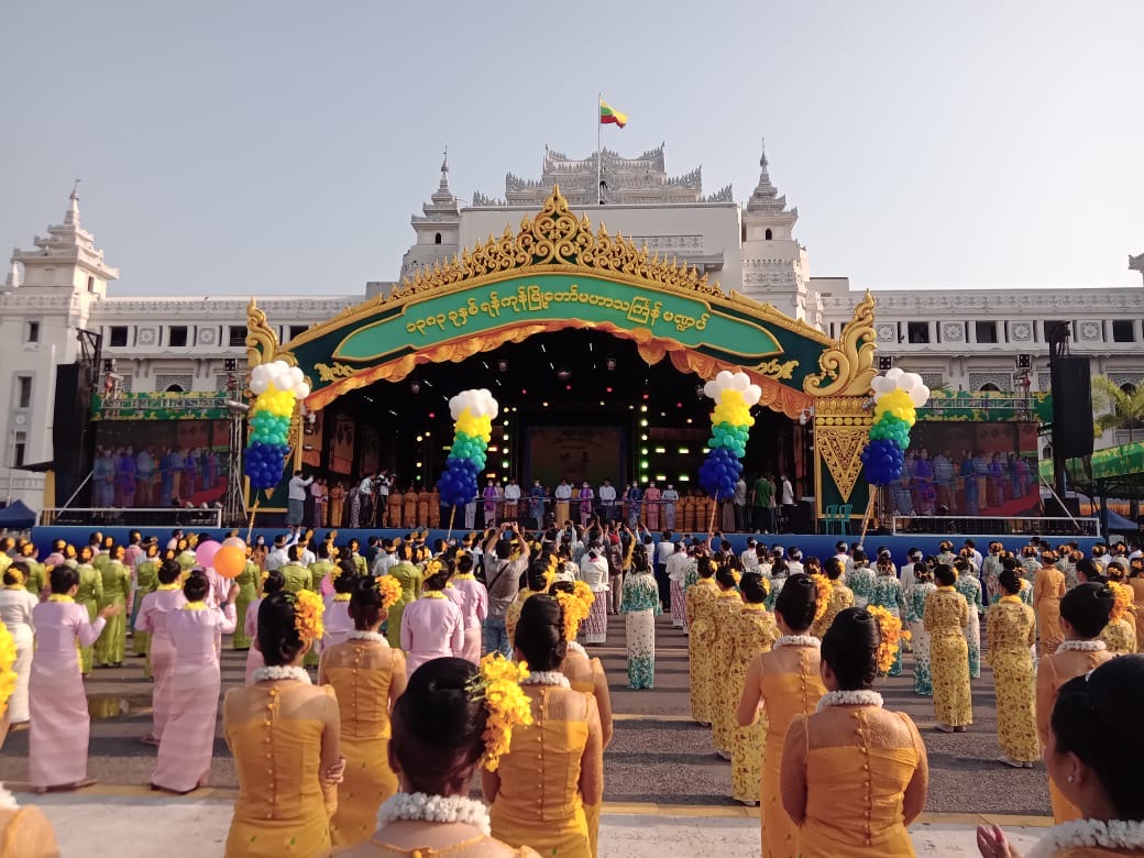 အခမ်းအနားတွင် ရန်ကုန်တိုင်းဒေသကြီး ဝန်ကြီးချုပ် ဦးစိုးသိန်းက နှစ်သစ်ကူး နုတ်ခွန်းဆက်စကား ပြောကြားပြီး အခမ်းအနားအား ဖဲကြိုးဖြတ်ဖွင့်လှစ်ခဲ့သည်။ ဆက်လက်ပြီး အနုပညာရှင်များမှ မြူမှုန် ဝေကင်းတေးသီချင်းဖြင့် သီဆိုပြီး အမေများအဖွဲ့မှ ယိမ်းအကများဖြင့် ဖျော်ဖြေခဲ့သည်။ ထို့နောက် တေးသံရှင်များမှ အလှည့်ကျတေးသီချင်းများဖြင့် ဆက်လက်ဖျော်ဖြေခဲ့ကြောင်း သတင်းရရှိသည်။