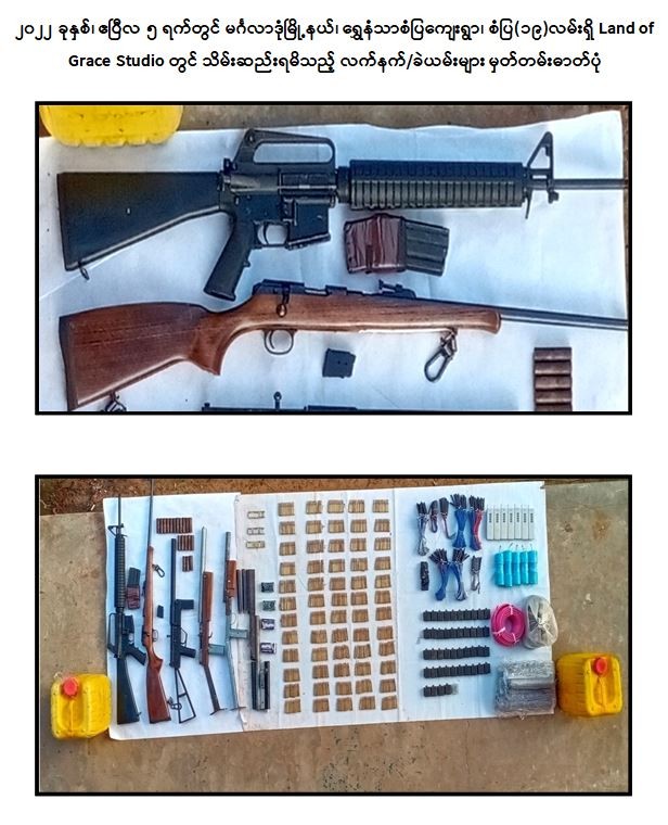 ထို့အပြင် ယင်းနေ့ ညနေပိုင်း၌ မင်္ဂလာဒုံမြို့နယ်၊ ပုလဲမြို့သစ်၊ ကျွန်းရွှေဝါလမ်းရှိ ရှမွေလ(ခ) ဦးရှင်ကြီး၏နေအိမ်၌ ရှမွေလ(ခ) ဦးရှင်ကြီး(၃၈)နှစ်၊ ကျော်ဇောဝင်း (၃၃)နှစ်နှင့် ဇေယျာထွန်း (၃၂)နှစ် တို့ ၃ ဦးအား MK-12 ၁ လက်၊ ကျည်အိမ် ၂ ခု၊ MK12 ပြောင်းကာ ၁ ခု၊ MK-12 ဒင် ၁ ခု၊ လက်လုပ်သေနတ် ၆ လက်၊ ကျည်မျိုးစုံ ၁၀၃၅ တောင့်၊ မှန်ပြောင်း ၁ လက်၊ ရှေ့ထွက်မိုင်း(ပြုလုပ်ဆဲ) ၁ လုံး၊ လက်လုပ်မိုင်း ၅ လုံး၊ ယမ်းချောင်း ၈၀ ချောင်း၊ ဒီတိုနေတာ ၃၂၀ ချောင်းအပါအဝင် မိုင်းနှင့်ဆက်စပ်ပစ္စည်းများဖြင့်လည်းကောင်း၊ လှိုင်သာယာမြို့နယ်၊ တပင်ရွှေထီးလမ်း၊ 81 ဘီယာဆိုင်၌ God of Death (GOD) အမည်ခံ အကြမ်းဖက်အဖွဲ့မှ သက်ပိုင်စိုး(၂၅)နှစ်၊ ထွန်းမင်းကျော် (၂၃)နှစ်နှင့် အေးချမ်းကိုကို (၂၂)နှစ်တို့ ၃ ဦးတို့အား လက်လုပ်မိုင်း ၁၀ လုံးဖြင့် လည်းကောင်း၊ မရမ်းကုန်းမြို့နယ်၊ ကုန်းမြင့်ရိပ်သာလမ်း၊ အမှတ်(၉၃/A)ရှိ Linn Studio ၌ ကျော်ကျော်အောင် (ခ)ကျော်ကြီး(၃၁)နှစ်အား လည်းကောင်း ထပ်မံဖမ်းဆီးရမိခဲ့သည်။