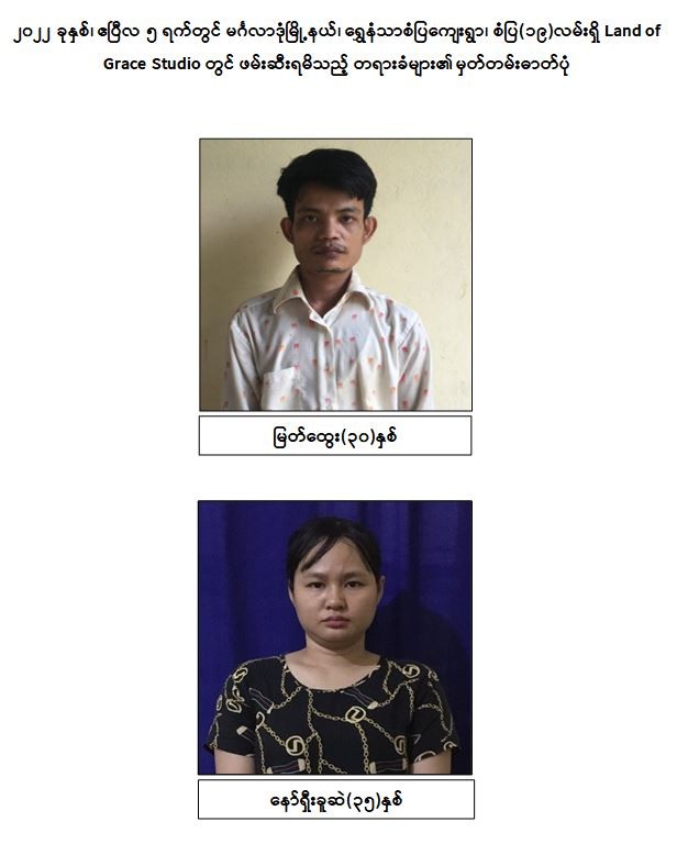 ဖမ်းဆီးရမိတရားခံ သီရိဝေ(ခ)မဝေ၏ ထွက်ဆိုချက်အရ ဧပြီလ ၁၁ ရက် ညပိုင်းတွင် မရမ်းကုန်း မြို့နယ်၊ ၉ ရပ်ကွက်၊ အညာစုလမ်း၊ အမှတ်(၁၇၉) နေအိမ်၌ ဇော်မင်းသိန်း(၃၉)နှစ်နှင့် လှမင်းသိန်း (၃၂)နှစ်တို့ ၂ ဦးအား ထပ်မံဖမ်းဆီးရမိခဲ့သည်။