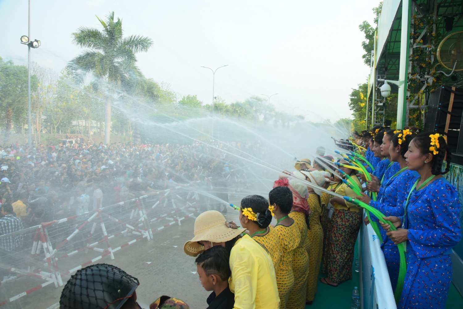 မြန်မာသက္ကရာဇ် ၁၃၈၃ ခုနှစ်၊ မြန်မာ့ရိုးရာနှစ်သစ်ကူး မဟာသင်္ကြန် အကျနေ့ဖြစ်သော ယနေ့တွင် ကာကွယ်ရေးဦးစီးချုပ်ရုံး(ကြည်း) ဝန်းအတွင်းရှိ ရေကစားမဏ္ဍပ်များ၌ သင်္ကြန်ချစ်သူ ပြည်သူများ၊ အရာရှိ၊ စစ်သည်၊ မိသားစုများက မဟာသင်္ကြန် ရေသဘင်ပွဲအား ပျော်ရွှင်စွာ ပါဝင်ဆင်နွှဲကြသည်။