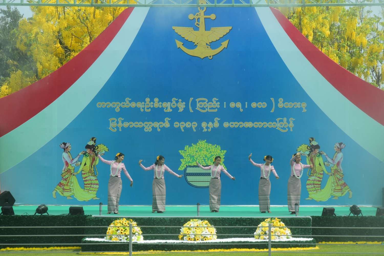 ယနေ့မနက်ပိုင်းတွင် နေပြည်တော်ဇေယျာသီရိရှိ ကာကွယ်ရေးဦးစီးချုပ်ရုံး(ကြည်း၊ ရေ၊လေ) မိသားစုရေကစားမဏ္ဍပ်၌ နိုင်ငံကျော်အနုပညာရှင်များနှင့် တေးသံရှင်များ၊ မိသားစု သင်္ကြန်ယိမ်းအကအဖွဲ့များက သီဆိုကပြဖျော်ဖြေကြရာ နိုင်ငံတော်စီမံအုပ်ချုပ်ရေးကောင်စီဒုတိယဥက္ကဋ္ဌ ဒုတိယဝန်ကြီးချုပ် ဒုတိယတပ်မတော်ကာကွယ်ရေးဦးစီးချုပ် ကာကွယ်ရေးဦးစီးချုပ်(ကြည်း) ဒုတိယဗိုလ်ချုပ်မှူးကြီး စိုးဝင်းသည် နိုင်ငံတော်စီမံအုပ်ချုပ်ရေးကောင်စီအဖွဲ့ဝင်များ၊ ပြည်ထောင်စုဝန်ကြီးများ၊ ဒုတိယ ဝန်ကြီးများ၊ ကာကွယ်ရေးဦးစီးချုပ်ရုံးမှ တပ်မတော်အရာရှိကြီးများနှင့် ဇနီးများနှင့်အတူ တက်ရောက်ကြည့်ရှုအားပေးကြပြီး သီဆိုကပြဖျော်ဖြေကြသည့် အနုပညာရှင်များနှင့် ယိမ်းအဖွဲ့များအား ဂုဏ်ပြုဆုငွေများ ချီးမြှင့်ပေးအပ်သည်။