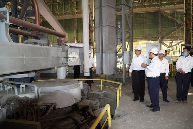 ထို့နောက် ပြည်ထောင်စုဝန်ကြီးသည် Business Plan နှင့် Project Management ရေးဆွဲရာတွင် ပါဝင်ဆောင်ရွက်ရမည့် လုပ်ငန်းစဉ်အသေးစိတ်တို့ကို ရှင်းလင်းဆွေးနွေးပြီး စက်ရုံအတွင်းရှိ သံရည်ကျိုအလုပ်ရုံ Melt Shop 1 အား လှည့်လည်ကြည့်ရှု စစ်ဆေးခဲ့ပြီး ဝန်ထမ်းများကို အားပေးစကား ပြောကြားခဲ့ကြောင်း သိရသည်။