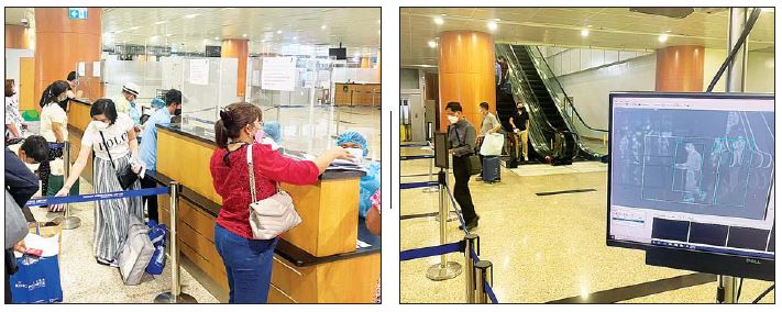 ခရီးသွားတွေအနေနဲ့ မြန်မာနိုင်ငံသို့ဆိုက်ရောက်ချိန်မှာ အရင်ဆုံး အနေနဲ့ သက်ဆိုင်ရာလေဆိပ် ကျန်းမာရေးအရာရှိတွေက ဆောင်ရွက်တဲ့ ကိုယ်အပူချိန်တိုင်းတာခြင်းနဲ့ လိုအပ်တဲ့ ကျန်းမာရေးစစ်ဆေးခြင်း၊ ပြည်သူ့ကျန်းမာရေးဆိုင်ရာ လိုအပ်တဲ့ စာရွက်စာတမ်းစစ်ဆေးမှုတွေ ကို ခံယူရမှာဖြစ်ပြီး လူဝင်မှုကြီးကြပ်ရေး၊ အကောက်ခွန်စတဲ့ ကောင်တာတွေမှာ လိုအပ်တဲ့ စစ်ဆေးအတည်ပြုမှုတွေ ခံယူရမှာ ဖြစ်ပါတယ်။
