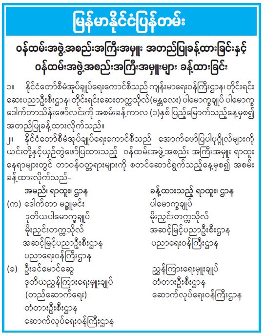 ဝန်ထမ်းအဖွဲ့အစည်းအကြီးအမှူး အတည်ပြုခန့်ထားခြင်းနှင့် ဝန်ထမ်းအဖွဲ့အစည်း အကြီးအမှူးများ ခန့်ထားခြင်း 04/22/2022