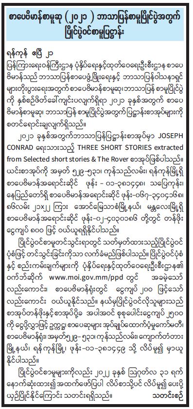 စာပေဗိမာန်စာမူဆု (၂၀၂၁) ဘာသာပြန်စာမူပြိုင်ပွဲအတွက် ပြိုင်ပွဲဝင်စာမူပြဋ္ဌာန်း