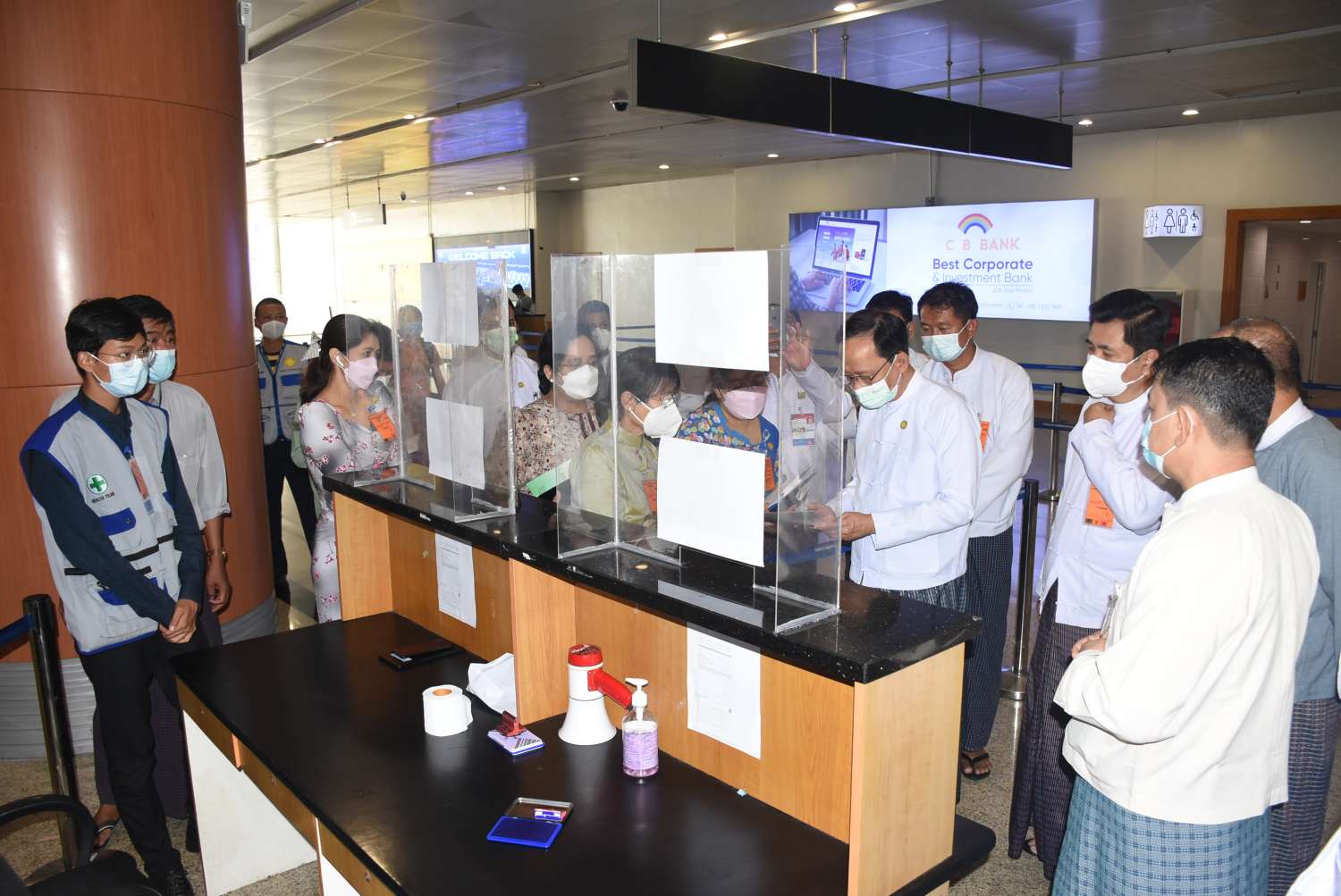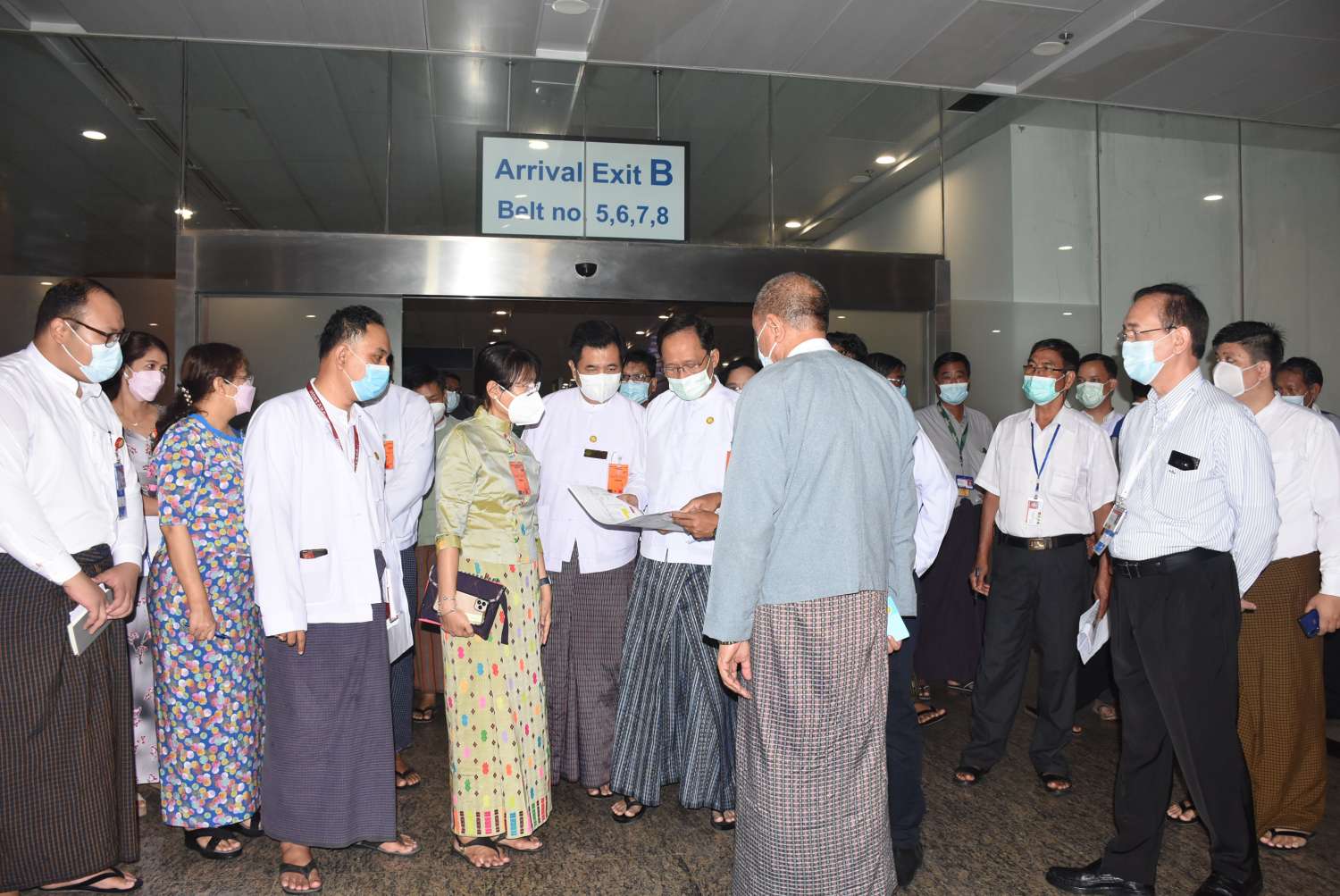 ယနေ့ နံနက်ပိုင်းတွင် ပြည်ထောင်စုဝန်ကြီးသည် ညွှန်ကြားရေးမှူးချုပ်များ တာဝန်ရှိသူများနှင့်အတူ ရန်ကုန်အပြည်ပြည်ဆိုင်ရာ လေဆိပ်သို့ရောက်ရှိပြီး နိုင်ငံတကာ ပုံမှန်လေကြောင်းခရီးစဉ်များဖြင့် ဝင်ရောက်လာကြမည့် ခရီးသည်များကို ကိုဗစ်-၁၉ ရောဂါပိုး ရှိ/ မရှိ RDT ဖြင့် စစ်ဆေးဆောင်ရွက်ရန် ပြင်ဆင်ဆောင်ရွက်နေမှုများကို ကြည့်ရှုစစ်ဆေးကာ တာဝန်ရှိသူများအား လိုအပ်သည်များ မှာကြားသည်။