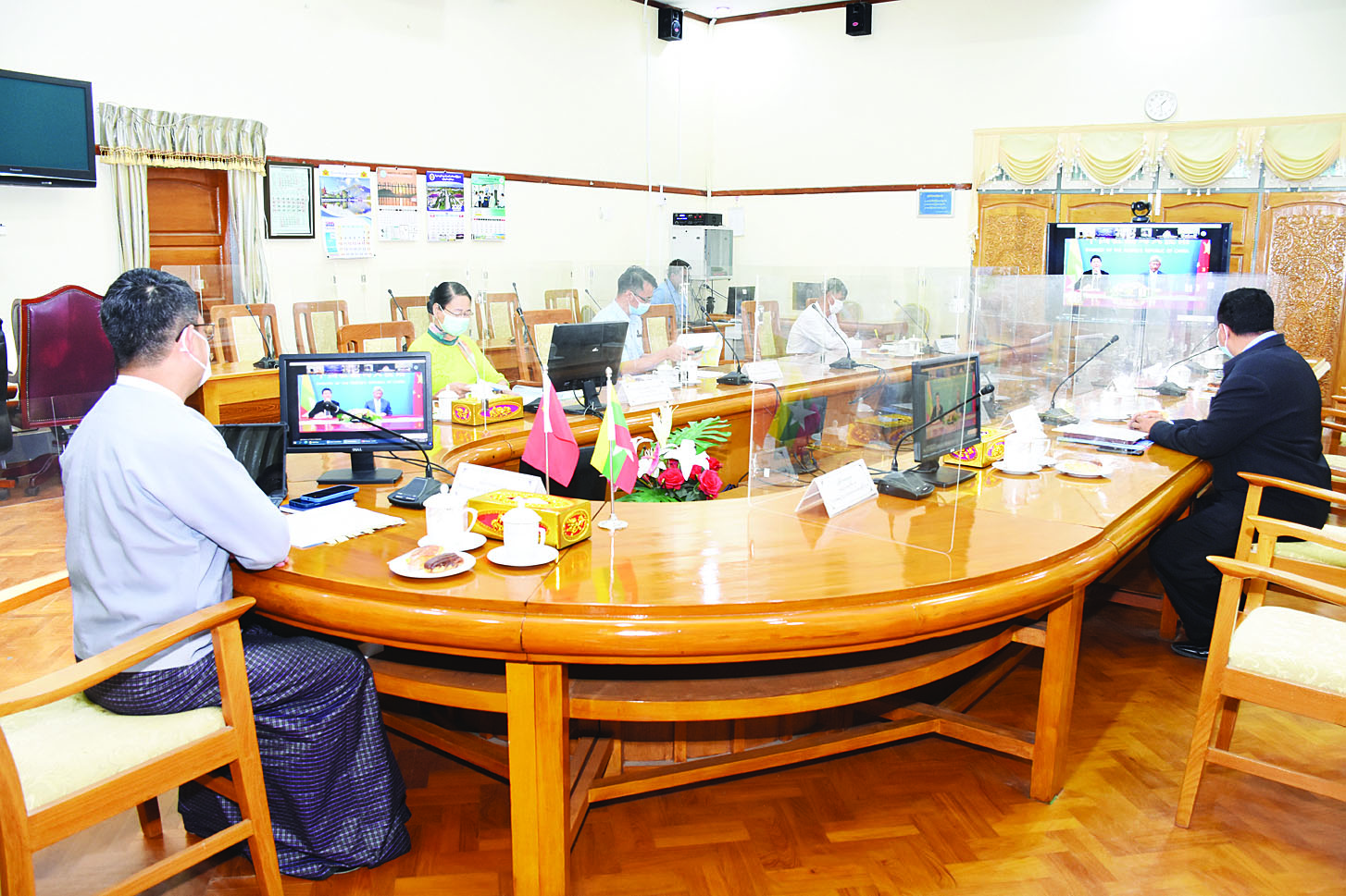 မြန်မာ-တရုတ် နှစ်နိုင်ငံနယ်စပ်ဒေသတွင် ကိုဗစ်-၁၉ ကပ်ရောဂါ ပူးတွဲကြိုတင် ကာကွယ် ထိန်းချုပ်ရေးကို ထိရောက်စွာတွန်းအားပေးနိုင်ရေး၊ နှစ်နိုင်ငံ ပြည်ဝင်/ ထွက်ဂိတ် နယ်စပ်ကုန်သွယ်မှု ချောမွေ့စေရေး၊ နှစ်နိုင်ငံစီးပွားရေးနှင့် ကုန်သွယ်ရေး ပူးပေါင်းဆောင်ရွက်မှုကို တည်ငြိမ်စွာ တွန်းအားပေးနိုင်ရေး ရည်ရွယ်၍ တရုတ်နိုင်ငံ (ယူနန်ပြည်နယ်)နှင့် မြန်မာနိုင်ငံအကြား နယ်စပ်ဂိတ် ကုန်စည်စီးဆင်းမှုဆိုင်ရာ အွန်လိုင်းညှိနှိုင်း ဆွေးနွေးပွဲကို ယနေ့ မွန်းလွဲ ၁ နာရီတွင် စီးပွားရေးနှင့် ကူးသန်းရောင်းဝယ်ရေးဝန်ကြီးဌာန အစည်းအဝေးခန်းမ၌ Virtual စနစ်ဖြင့် ကျင်းပသည်။