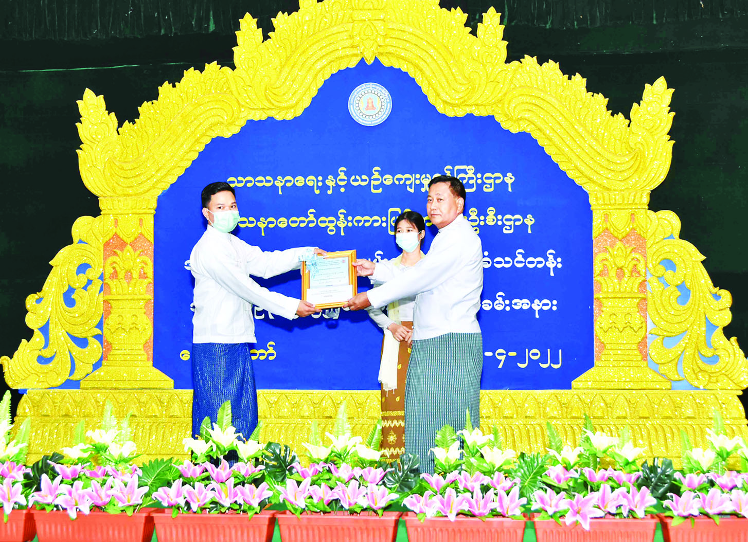 ထို့နောက် ဒုတိယဝန်ကြီးဦးအေးထွန်းက သင်တန်းတွင် ပထမဆု၊ ဒုတိယဆု၊တတိယဆု ရရှိသူများကို ဆုများပေးအပ်ချီးမြှင့်ပြီး သာသနာတော် ထွန်းကားပြန့်ပွားရေးဦးစီးဌာန ညွှန်ကြားရေးမှူးချုပ်က သင်တန်းဆင်းအောင်လက်မှတ်များကို ပေးအပ်ပြီး အခမ်းအနားကို ရုပ်သိမ်းလိုက်သည်။