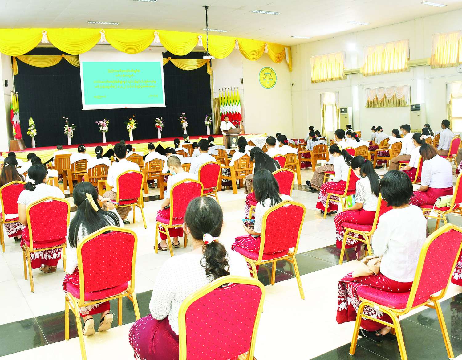 လက်ထောက်စာရင်းစစ်မှူးများ လုပ်ငန်းခွင်ဝင် ကျွမ်းကျင်မှုသင်တန်းအမှတ်စဉ် - ၁/၂၀၂၂ သင်တန်းဖွင့်ပွဲ အခမ်းအနားကို ယနေ့နံနက် ၉ နာရီခွဲက ကိုဗစ်-၁၉ ရောဂါဆိုင်ရာ ထုတ်ပြန်ထားသော စည်းကမ်းသတ်မှတ်ချက်များနှင့်အညီ ပြည်ထောင်စု စာရင်းစစ်ချုပ်ရုံး (နေပြည်တော်) စုပေါင်းခန်းမ၌ ကျင်းပသည်။