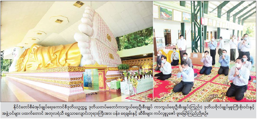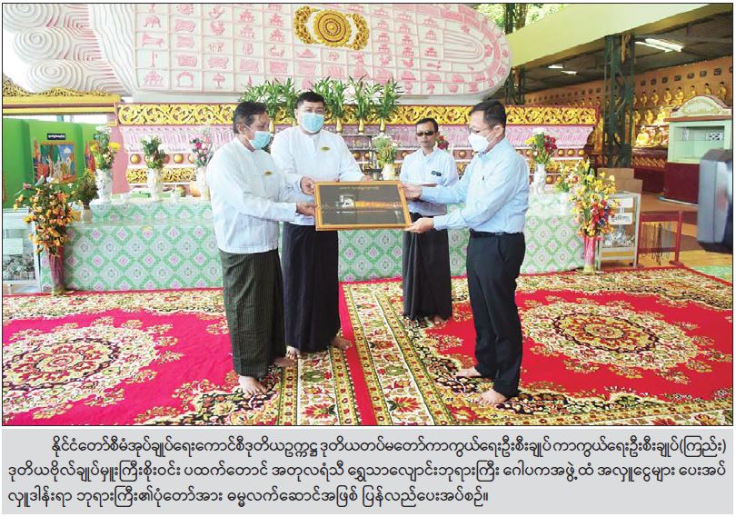ယင်းနောက် နိုင်ငံတော်စီမံအုပ်ချုပ် ရေးကောင်စီဒုတိယဥက္ကဋ္ဌ ဒုတိယ တပ်မတော်ကာကွယ်ရေး ဦးစီးချုပ် ကာကွယ်ရေးဦးစီးချုပ်(ကြည်း)နှင့် အဖွဲ့ ဝင်များသည် ပထက်တောင် အတုလရံသီ ရွှေသာလျောင်းဘုရားကြီးအား ပန်း၊‌ ရေချမ်းနှင့် ဆီမီးများ ကပ်လှူပူဇော် ဖူးမြော်ကြည်ညို၍ အလှူငွေများ ပေးအပ်လှူဒါန်းရာ ဘုရားဂေါပကအဖွဲ့ဝင် များက လက်ခံရယူကြပြီး ဘုရားကြီး၏ ပုံတော်အား ဓမ္မလက်ဆောင်အဖြစ် ပြန်လည်ပေးအပ်သည်။ ထို့နောက် နိုင်ငံတော်စီမံအုပ်ချုပ်ရေး ကောင်စီ ဒုတိယဥက္ကဋ္ဌ ဒုတိယတပ်မတော်ကာကွယ် ရေးဦးစီးချုပ် ကာကွယ်ရေးဦးစီးချုပ် (ကြည်း)သည် ဘုရားကြီး ဧည့်သည်တော် မှတ်တမ်းစာအုပ်တွင် လက်မှတ်ရေးထိုး ခဲ့ကြောင်း သိရသည်။
