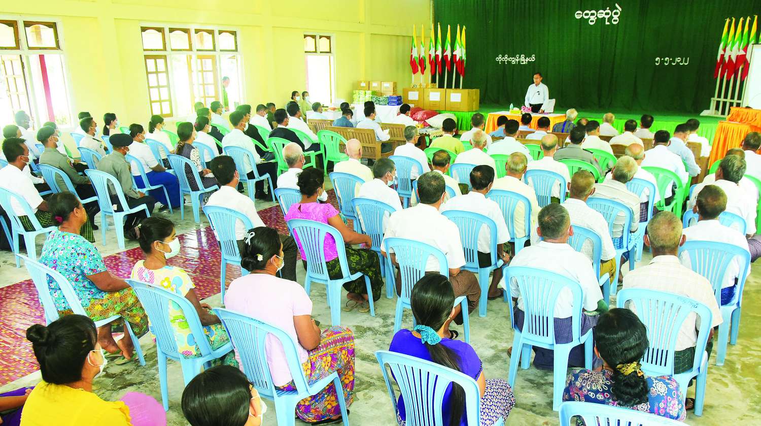ထို့နောက် နိုင်ငံတော်စီမံအုပ်ချုပ်ရေးကောင်စီ ဒုတိယဥက္ကဋ္ဌ ဒုတိယတပ်မတော်ကာကွယ်ရေးဦးစီးချုပ်၊ ကာကွယ်ရေးဦးစီးချုပ် (ကြည်း) က ဒေသဖွံဖြိုးရေးအတွက် ထောက်ပံ့ငွေများကိုလည်းကောင်း တိုင်းဒေသကြီးဝန်ကြီးချုပ်က စားသောက်ဖွယ်ရာများကို လည်းကောင်း ပေးအပ်ရာ တာဝန်ရှိသူများက လက်ခံရယူကြသည်။