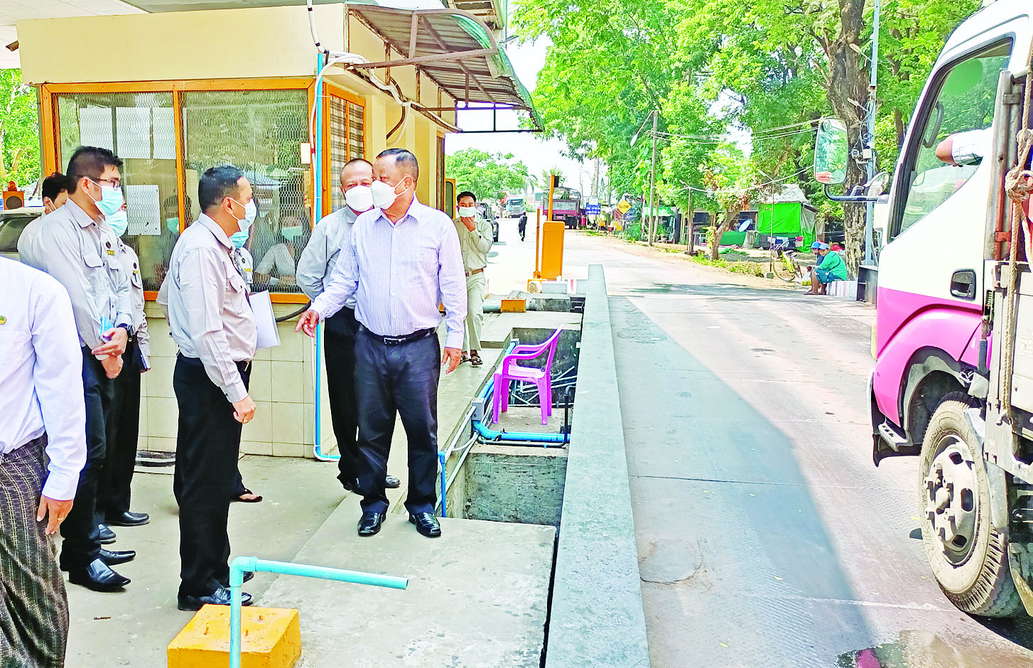 ဆက်လက်၍ ဒုတိယဝန်ကြီးနှင့်အဖွဲ့သည် ရန်ကုန်-ပုသိမ်လမ်း မိုင်(၄၂ / ၆ - ၄၃ / ၀) နေရာရှိ လမ်းဦးစီးဌာန ဗိုလ်မြတ်ထွန်းဂိတ် (လမ်း၊ တံတား အသုံးပြုခ ကောက်ခံရေးစခန်း)သို့ ကွင်းဆင်း စစ်ဆေးပြီး လိုအပ်သည်များ မှာကြားသည်။
