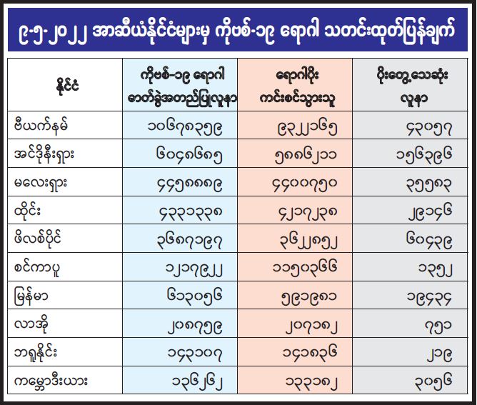 ၉-၅-၂၀၂၂ အာဆီယံနိုင်ငံများမှ ကိုဗစ်-၁၉ ရောဂါ သတင်းထုတ်ပြန်ချက်