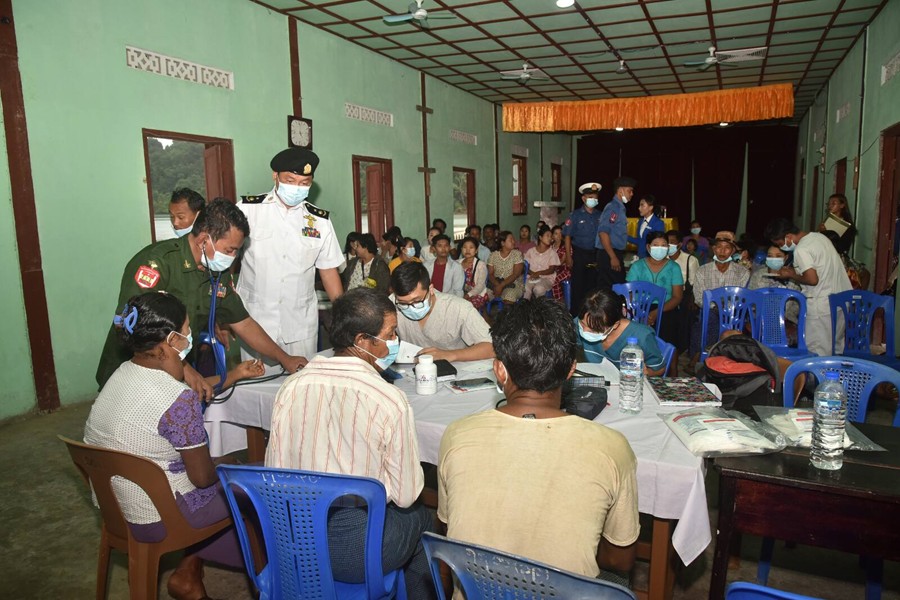 တပ်မတော်ပင်လယ်သွားဆေးရုံရေယာဉ်(သံလွင်)မှ နယ်လှည့်အထူးကုဆေးအဖွဲ့ ဘုတ်ပြင်းမြို့နယ်၊ ပုလဲကျွန်းနှင့် ပတ်ဝန်းကျင်ကျေးရွာများရှိ ဒေသခံပြည်သူများအား ကျန်းမာရေးစောင့်ရှောက်မှုလုပ်ငန်းများ ဆောင်ရွက်