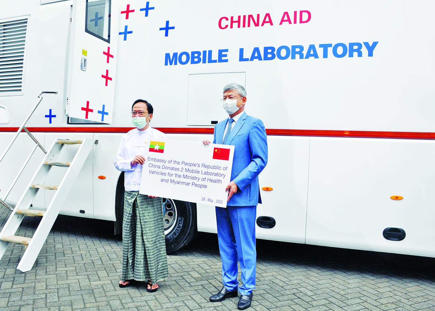 တရုတ်ပြည်သူ့သမ္မတနိုင်ငံမှ မြန်မာနိုင်ငံသို့ လှူဒါန်းသည့် ကိုဗစ် - ၁၉ ရောဂါ ကာကွယ်ဆေးနှင့်ဆေးပစ္စည်းများ Mobile Laboratory Vehicles နှစ်စီး လွှဲပြောင်းပေးအပ်ပွဲ အခမ်းအနားကျင်းပ