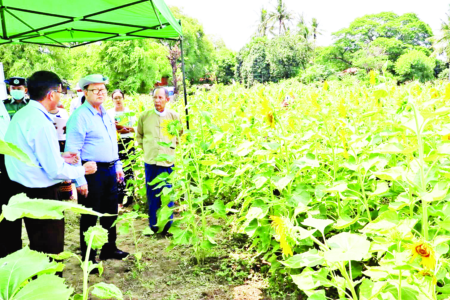 အလားတူ ပွင့်ဖြူမြို့နယ် ကံသာကြီးကျေးရွာအုပ်စု တောင်သူ ဦးမျိုးညွန့်ဦး၏ နွေနှမ်းစံပြစိုက်ခင်း ကိုကြည့်ရှုအားပေးသည်။ ထို့နောက် မကွေးတိုင်းဒေသကြီး စီမံအုပ်ချုပ်ရေးကောင်စီရုံး၌ တိုင်းဒေသကြီးဝန်ကြီးချုပ် ဦးတင့်လွင်နှင့်တွေ့ဆုံ၍ ရေ၊ မြေ၊ ဒေသနှင့် ကိုက်ညီသည့် မျိုးသန့်များ တိုးချဲ့စိုက်ပျိုးနိုင်ရေးအတွက် အာဟာရပြည့်ဝပြီး ကျန်းမာရေးနှင့်ညီညွတ်သည့် စားသုံးဆီပိုလျှံရေးအတွက် ဆီထွက်အများဆုံး သီးနှံဖြစ်သည့် နေကြာသီးနှံတိုးချဲ့ စိုက်ပျိုးနိုင်ရေး စားသုံးသူများ ဘေးအန္တရာယ်ကင်းရှင်း၍ အထွက်ကောင်းပြီး အရည်အသွေးမြင့်မားသော အကျိုးအမြတ်အများဆုံးရရှိမည့်မျိုးများကို ထိရောက်စွာ သုတေသနပြုထုတ်လုပ်နိုင်ရေး စိုက်ပျိုးရေးနှင့် တောင်သူပညာပေး ဆောင်ရွက်မည့်အစီအစဉ်များကို တွေ့ဆုံဆွေးနွေးသည်။