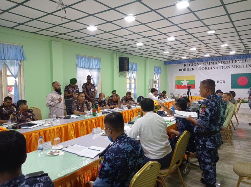 အစည်းအဝေးတွင် မြန်မာ-ဘင်္ဂလားဒေ့ရှ် နှစ်နိုင်ငံနယ်နိမိတ်မှတ်တိုင်များအနီး အဆောက်အဦ ဆောက်လုပ်မှုများဖျက်သိမ်းရေး၊ နယ်စပ်ဒေသအတွင်း အကြမ်းဖက်သောင်း ကျန်းသူအဖွဲ့များ လှုပ်ရှားနေမှု၊ ပစ်ခတ်မှုဖြစ်စဉ်များစသည့် သတင်းများနှင့်စပ်လျဉ်း၍ အပြန်အလှန် သတင်းဖလှယ်ပေးရန်၊ မြန်မာ-ဘင်္ဂလားဒေ့ရှ် နယ်နိမိတ်များအတွင်းနှင့် နယ်စပ်တစ်လျှောက် နတ်မြစ် ဖြတ်ကျော်သွားလာလှုပ်ရှား၍ နယ်စပ်ဖြတ်ကျော်မှုခင်းများ ကျူးလွန်မှုများနှင့် ပတ်သက်၍ မြေပြင်သတင်း စုံစမ်းဖော်ထုတ်ရေးနှင့် တားဆီးနှိမ်နင်းရေး၊ ဘင်္ဂလားဒေ့ရှ်နိုင်ငံ ဘက်မှ မြန်မာနိုင်ငံ အတွင်းသို့ နယ်စပ်ခြံစည်းရိုးအား တရားမဝင်ဖြတ်ကျော် ဝင်ရောက်မှုများကို ထိရောက်စွာတားဆီးပေးနိုင်ရေး၊ နှစ်နိုင်ငံနယ်ခြားစောင့် တပ်ဖွဲ့များအကြား ပူးတွဲကင်းလှည့်ရေး၊ မူးယစ်ဆေးဝါးတားဆီး နှိမ်နင်းရေးနှင့်ပတ်သက်၍ သတင်းအချက်အလက် ဖလှယ်မှုများကို ပိုမိုတိုးမြှင့်ဆောင်ရွက်သွားရေး၊ မြန်မာ-ဘင်္ဂလားဒေ့ရှ် နှစ်နိုင်ငံ နယ်စပ် ဆက်ဆံရေးရုံး (မောင်တော-တက္ကနာ့ဖ်) လုပ်ငန်းစဉ်များ အကောင်အထည် ဖော်နိုင်ရေး၊ နှစ်နိုင်ငံ နယ်ခြားစောင့်တပ်ဖွဲ့များအကြား ချစ်ကြည်ရင်းနှီးမှု၊ အပြန်အလှန် ယုံကြည်လေးစားမှု တို့ ပိုမိုဖြစ်ထွန်းနိုင်ရေးအတွက် ချစ်ကြည်ရေး အားကစားပြိုင်ပွဲများ၊ ယဉ်ကျေးမှုဖလှယ်မည့် ကိစ္စရပ်များ၊ ချစ်ကြည်ရေးခရီးစဉ်များ ပြုလုပ်နိုင်ရေး နှစ်ဖက်ညှိနှိုင်း ဆောင်ရွက်သွားရန် ဆွေးနွေးခဲ့ကြသည်။