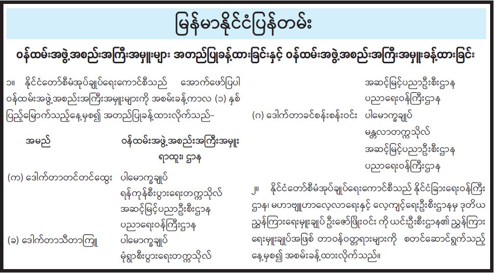 ဝန်ထမ်းအဖွဲ့အစည်းအကြီးအမှူးများ အတည်ပြုခန့်ထားခြင်းနှင့် ဝန်ထမ်းအဖွဲ့အစည်းအကြီး အမှူးခန့်ထားခြင်း