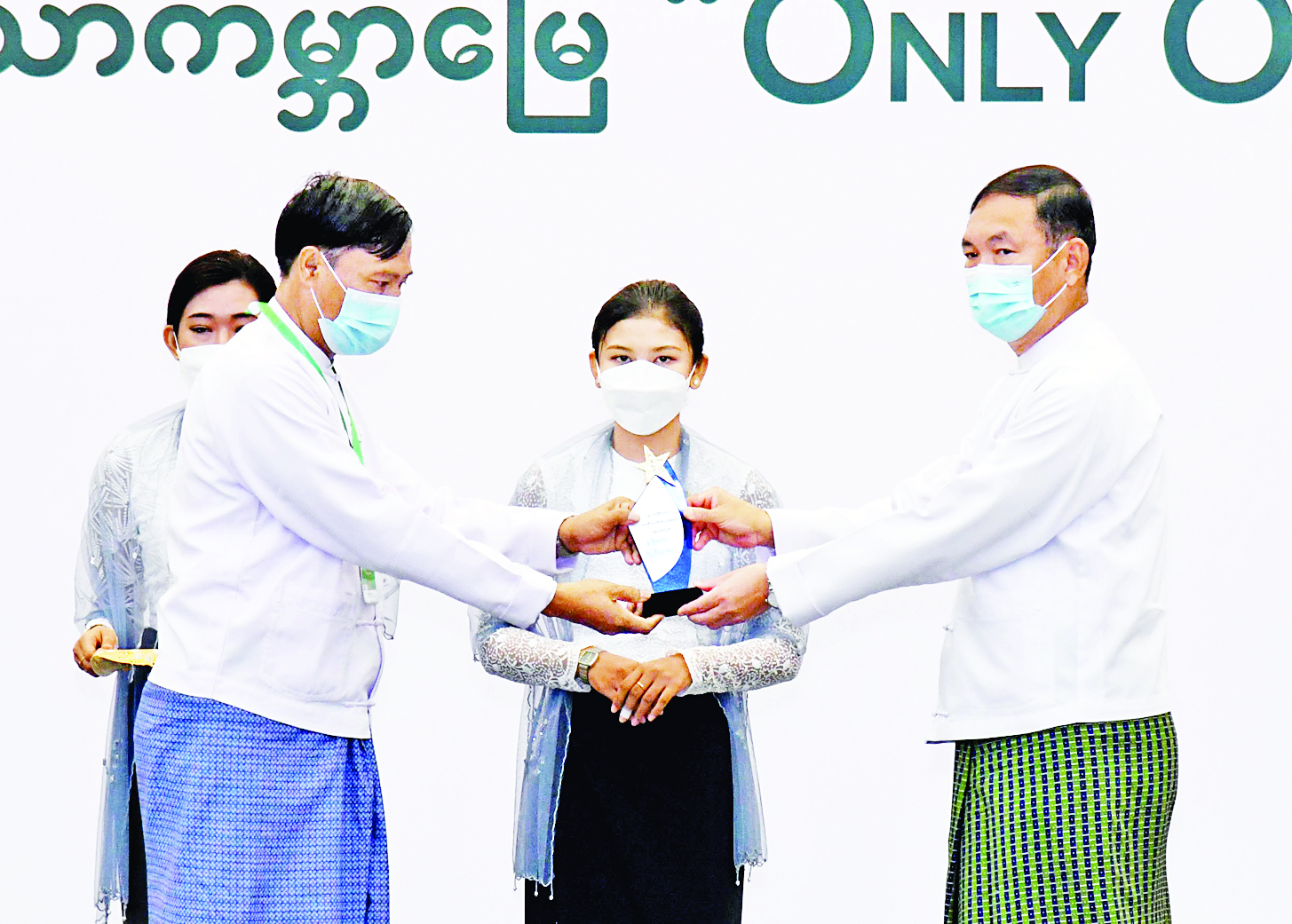 ဆက်လက်ပြီး နိုင်ငံတော်စီမံအုပ်ချုပ်ရေးကောင်စီ ဥက္ကဋ္ဌ၊ တပ်မတော်ကာကွယ်ရေး ဦးစီးချုပ် ဗိုလ်ချုပ်မှူးကြီး မင်းအောင်လှိုင် က ကမ္ဘာ့ပတ်ဝန်းကျင် ထိန်းသိမ်းရေးနေ့ အထိမ်းအမှတ် စာစီစာကုံး ပထမဆုရရှိသည့် ဒေါ်မိုးမိုးသွင် (ရနံ့မျိုး-ဟင်္သာတ)၊ ဒုတိယဆုရရှိသည့် ဒေါ်ငြိမ်းငြိမ်းစန္ဒာဝင်း (အမရာ)၊ တတိယဆုရရှိသည့် ဒေါ်နုနုအေး (နုနုအေး-ဇလွန်)၊ ဆောင်းပါး ပထမဆုရရှိသည့် ဦးအာကာစံ (အာကာစံ)၊ ဒုတိယဆုရရှိသည့် ဦးဇော်လွင်ဦး (ဇော်လွင်ဦး-ဟင်္သာတ)နှင့် တတိယဆု ရရှိသည့် ဦးမောင်သန်းညွန့် (စိမ်းညိုအောင်) တို့ကို ဆုများ ပေးအပ်ချီးမြှင့်သည်။