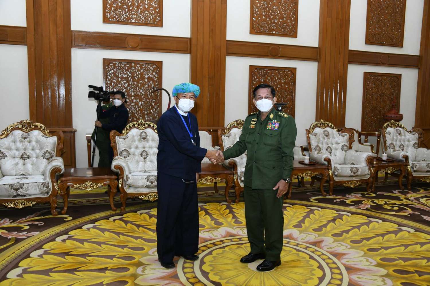 တွေ့ဆုံပွဲအပြီးတွင် နိုင်ငံတော်စီမံအုပ်ချုပ်ရေးကောင်စီ ဥက္ကဋ္ဌ တပ်မတော်ကာကွယ်ရေးဦးစီးချုပ်က ပအိုဝ်းအမျိုးသားလွတ်မြောက်ရေး အဖွဲ့ချုပ်(PNLO)မှ ဒုတိယဥက္ကဋ္ဌ(၁)နှင့် အဖွဲ့ဝင်များအား အမှတ်တရလက်ဆောင်ပစ္စည်းများ ပေးအပ်ရာ ပအိုဝ်းအမျိုးသားလွတ်မြောက်ရေးအဖွဲ့ချုပ် (PNLO)မှ ဒုတိယဥက္ကဋ္ဌ(၁)မှ ဒေသထွက် လက်ဆောင်ပစ္စည်းများကို ပြန်လည်ပေးအပ်ခဲ့ပြီး အမှတ်တရ စုပေါင်းဓာတ်ပုံရိုက်ကြသည်။