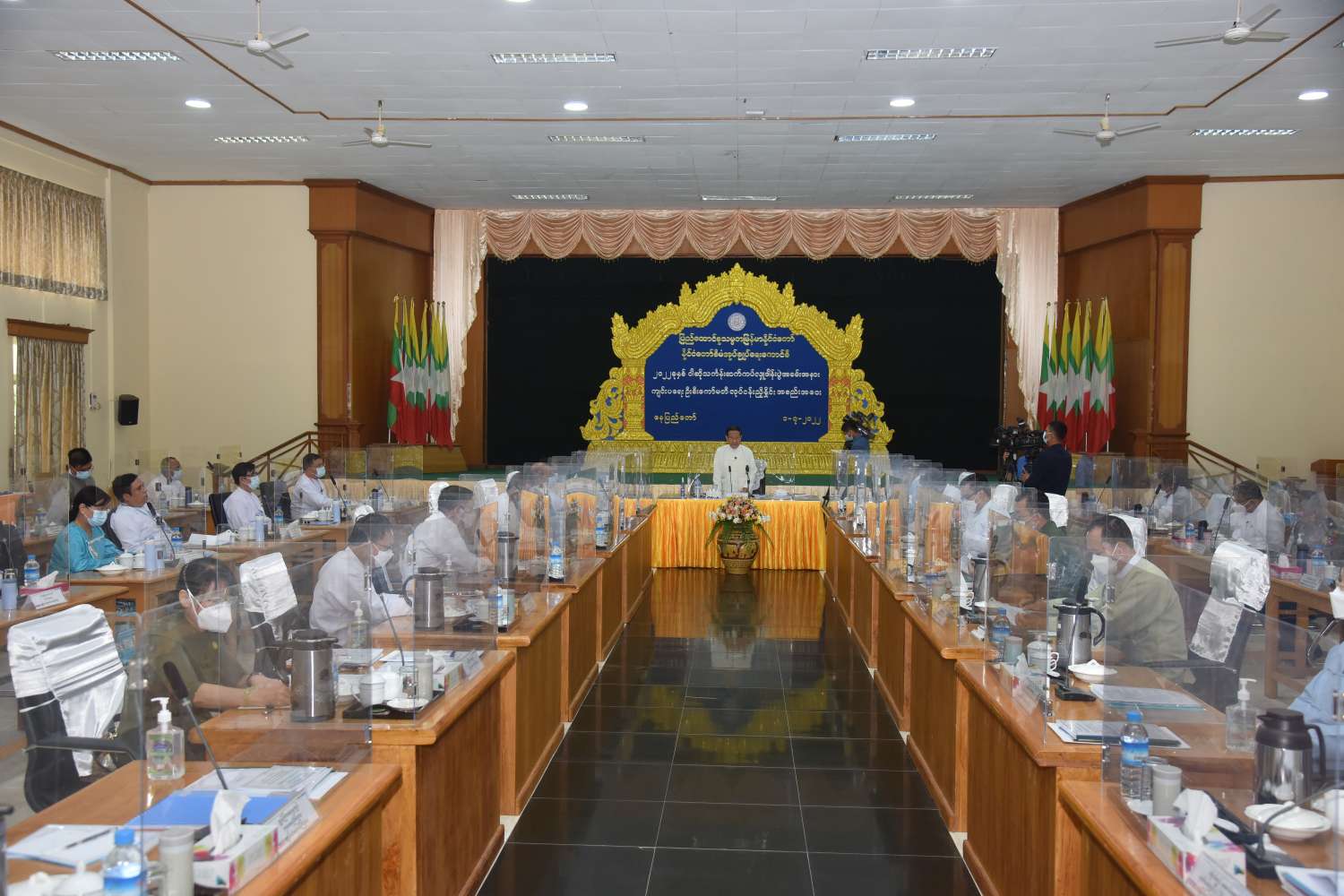 နိုင်ငံတော်စီမံအုပ်ချုပ်ရေးကောင်စီ၊ ၂၀၂၂ ခုနှစ် ဝါဆိုသင်္ကန်းဆက်ကပ်လှူဒါန်းပွဲ အခမ်းအနားကျင်းပရေး ဦးစီးကော်မတီ ဒုတိယအကြိမ် လုပ်ငန်းညှိနှိုင်းအစည်းအဝေးကို ယနေ့မွန်းလွဲ ၂ နာရီတွင် နေပြည်တော်ရှိ သာသနာရေးနှင့်ယဉ်ကျေးမှုဝန်ကြီးဌာန၊ စုပေါင်းအစည်းအ ဝေးခန်းမ၌ ကိုဗစ်−၁၉ စည်းမျဉ်းစည်းကမ်းများနှင့်အညီ ကျင်းပသည်။