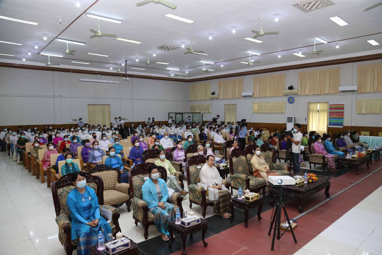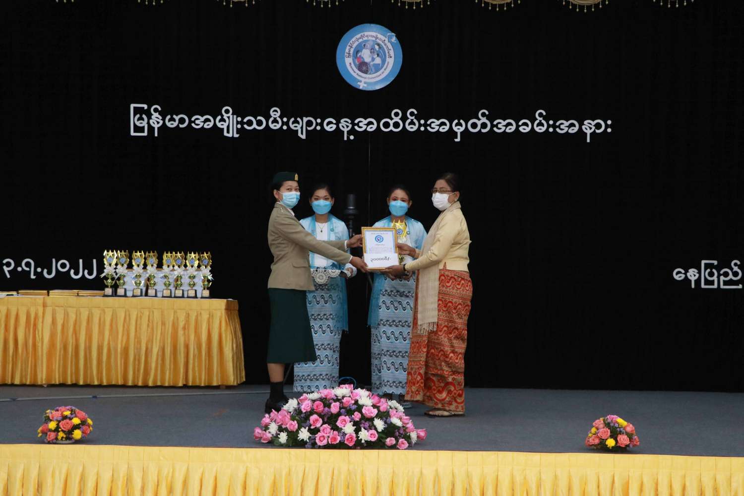 အခမ်းအနားသို့ နိုင်ငံတော်စီမံအုပ်ချုပ်ရေးကောင်စီအဖွဲ့ဝင် ဒေါ်အေးနုစိန်၊ မြန်မာနိုင်ငံလုံးဆိုင်ရာ အမျိုးသမီးကော်မတီဥက္ကဋ္ဌ၊ လူမှုဝန်ထမ်း၊ ကယ်ဆယ်ရေးနှင့် ပြန်လည်နေရာချထားရေးဝန်ကြီးဌာန ပြည်ထောင်စုဝန်ကြီး ဒေါက်တာသက်သက်ခိုင်၊ ပြည်ထောင်စုအဆင့်ပုဂ္ဂိုလ်များနှင့် ၎င်းတို့၏ ဇနီးများ၊ အမျိုးသမီးအဖွဲ့အစည်းများမှ ကိုယ်စားလှယ်များ မြန်မာနိုင်ငံလုံးဆိုင်ရာ အမျိုးသမီးကော်မတီအဖွဲ့ဝင်များ၊ ဌာနဆိုင်ရာ အကြီးအကဲများ၊ ထူးချွန်ဆုရရှိသူ အမျိုးသမီးများ၊ ဖိတ်ကြားထားသည့် ပုဂ္ဂိုလ်များ တက်ရောက်ကြပြီး တိုင်းဒေသကြီးနှင့် ပြည်နယ်များမှ အမျိုးသမီးကော်မတီ ဥက္ကဋ္ဌများနှင့် အတွင်းရေးမှူးများက Virtual စနစ်ဖြင့် တက်ရောက်ကြသည်။