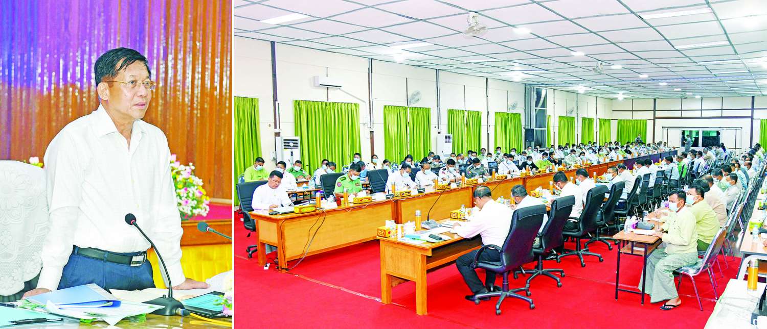 ဦးစွာဧရာဝတီတိုင်းဒေသကြီး ဝန်ကြီးချုပ်နှင့် တာဝန်ရှိသူတို့က နိုင်ငံတော် စီမံအုပ်ချုပ်ရေးကောင်စီဥက္ကဋ္ဌ နိုင်ငံတော်ဝန်ကြီးချုပ်၏ ၂၀၂၁ ခုနှစ်အတွင်း လာရောက်သည့် ခရီးစဉ်ညွှန်ကြားချက်များအပေါ် လိုက်နာဆောင်ရွက်ပြီးစီမှု၊ ဒေသဆိုင်ရာ အချက်အလက်များ၊ ခရိုင်များတိုးချဲ့ ဖွဲ့စည်းမှုနှင့်ဝန်ထမ်းများခန့်အပ် ထားရှိမှုအခြေအနေများ၊ စိုက်ပျိုးမွေးမြူရေး လုပ်ငန်းများဆောင်ရွက်ထားရှိမှု၊ ဆည်ရေသောက်နှင့် လျှပ်စစ်မီးလင်းရေး လုပ်ငန်းများ ဆောင်ရွက်ထားရှိမှု၊ လျှပ်စစ်မြစ်ရေတင်စီမံကိန်းများ ဆောင်ရွက်လျက်ရှိမှု၊ မိုးစပါးအထွက်နှုန်းတိုးတက်ရေး ကြိုးပမ်းဆောင်ရွက်လျက် ရှိမှု၊ ဆီထွက်သီးနှံများ စိုက်ပျိုးနိုင်မှုနှင့် ဆီဖူလုံမှုအခြေအနေ၊ အသား၊ ငါးနှင့်ဥများထုတ်လုပ်၍ ပြည်သူများကို ရောင်းချပေးနိုင်မှု၊ မြစ်ချောင်းအင်းအိုင်များအတွင်း ငါးမျိုးများစိုက်ထည့်မှု၊ နေလှမ်းဆားကြမ်းနှင့် အိုင်အိုဒင်းဆားများ ထုတ်လုပ်မှု၊ သဘာဝပတ်ဝန်းကျင် ထိန်းသိမ်းရေးလုပ်ငန်းများ ဆောင်ရွက်ထားရှိမှု၊ လျှပ်စစ်ဓာတ်အား ကဏ္ဍဖွံ့ဖြိုးရေး ဆောင်ရွက်နေမှုနှင့် ဓာတ်အားဖြန့်ဖြူးပေးနေမှု၊ လမ်းတံတားများဆိုင်ရာ အခြေအနေများနှင့် အဆင့်မြှင့်တင်ဆောင်ရွက်နေမှု၊ ပြည်သူ့အငှားအိမ်ရာ ဆောင်ရွက်ထားရှိမှု၊ စက်မှုဇုန်များတွင် စက်ရုံများလည်ပတ်ဆောင်ရွက်နေမှု၊ ပြည်သူ့ဆေးရုံကြီးတိုးချဲ့ တည်ဆောက်ထားရှိမှု၊ အခြေခံပညာကျောင်းများနှင့် အဆင့်မြင့် ပညာကျောင်းများ ပြန်လည်ဖွင့်လှစ်သင်ကြားလျက်ရှိမှုနှင့် တက္ကသိုလ်ဝင်တန်း ဖြေဆိုအောင်မြင်မှု အခြေအနေများ၊ ဆေးရုံများဖွင့်လှစ်ထားရှိမှုနှင့် ကျန်းမာရေးဝန်ထမ်းများခန့်အပ်ထားရှိမှု၊ ကိုဗစ်-၁၉ ရောဂါကာကွယ်ဆေးထိုးနှံပေးနိုင်မှု၊ ပန်းခင်းစီမံချက်များ အကောင်အထည်ဖော် ဆောင်ရွက်ပြီးစီးမှု၊ တိုင်းဒေသကြီးအတွင်း နှစ်အလိုက် ပြည်တွင်း၊ ပြည်ပ ခရီးသွားများ ဝင်ရောက်မှုနှင့် အခြားလူမှုရေး၊ စီးပွားရေးနှင့် ကျန်းမာရေးဆိုင်ရာကိစ္စရပ်များကို ရှင်းလင်းတင်ပြသည်။
