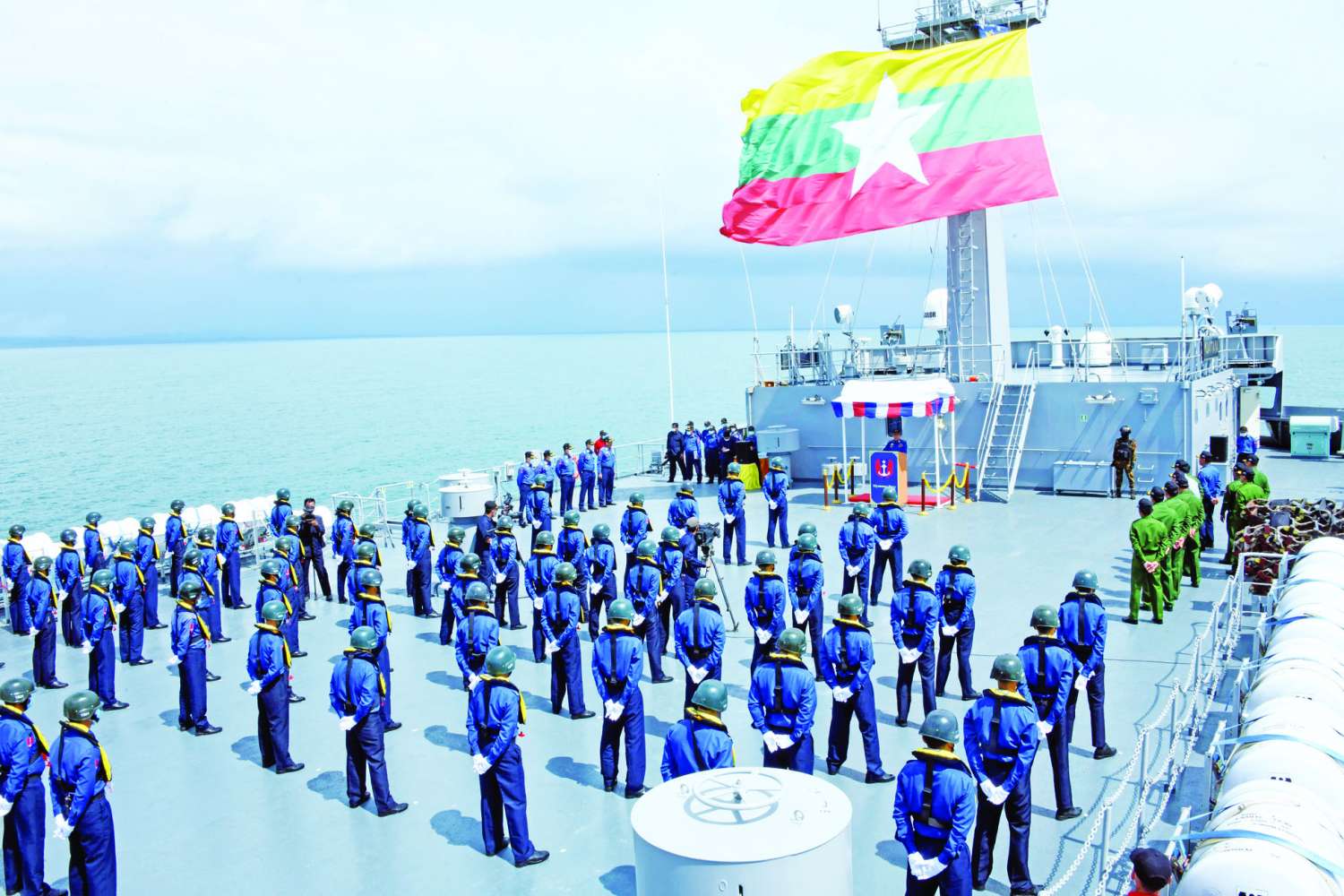 မိမိတို့နိုင်ငံ၏ ကမ်းရိုးတန်းအရှည်သည် မိုင်ပေါင်း ၁၃၀၀ ခန့်ရှိပြီး ရေပြင်ပိုင်နက်အနေဖြင့် စတုရန်းမိုင်ပေါင်း ၁၄၄၀၀၀ ကျော်ကျယ်ဝန်းသဖြင့် ကျယ်ပြောလှသည့် ရေပြင်ပိုင်နက်နယ်နိမိတ်ကို စိုးမိုးနိုင်ရန်မှာ တပ်မတော်(ရေ)တစ်ခုတည်းဖြင့် ဆောင်ရွက်၍ ရနိုင်မည်မဟုတ်ကြောင်း၊ လက်ရှိအခြေအနေတွင် တပ်မတော်(ရေ)ကို ပထမအဆင့်အနေဖြင့် မြန်မာ့ပင်လယ်ပြင်သီးသန့်စီးပွားရေးဇုန်ကို အပြည့်အဝကာကွယ်နိုင်ရေး သုံးဘက်မြင် စစ်ဆင်နိုင်စွမ်းရှိသည့် တိုက်ပွဲဝင်အသင့်ရေတပ်(Three Dimensional Combat Ready Navy)အဖြစ် မျှော်မှန်းဆောင်ရွက်လျက်ရှိကြောင်း။