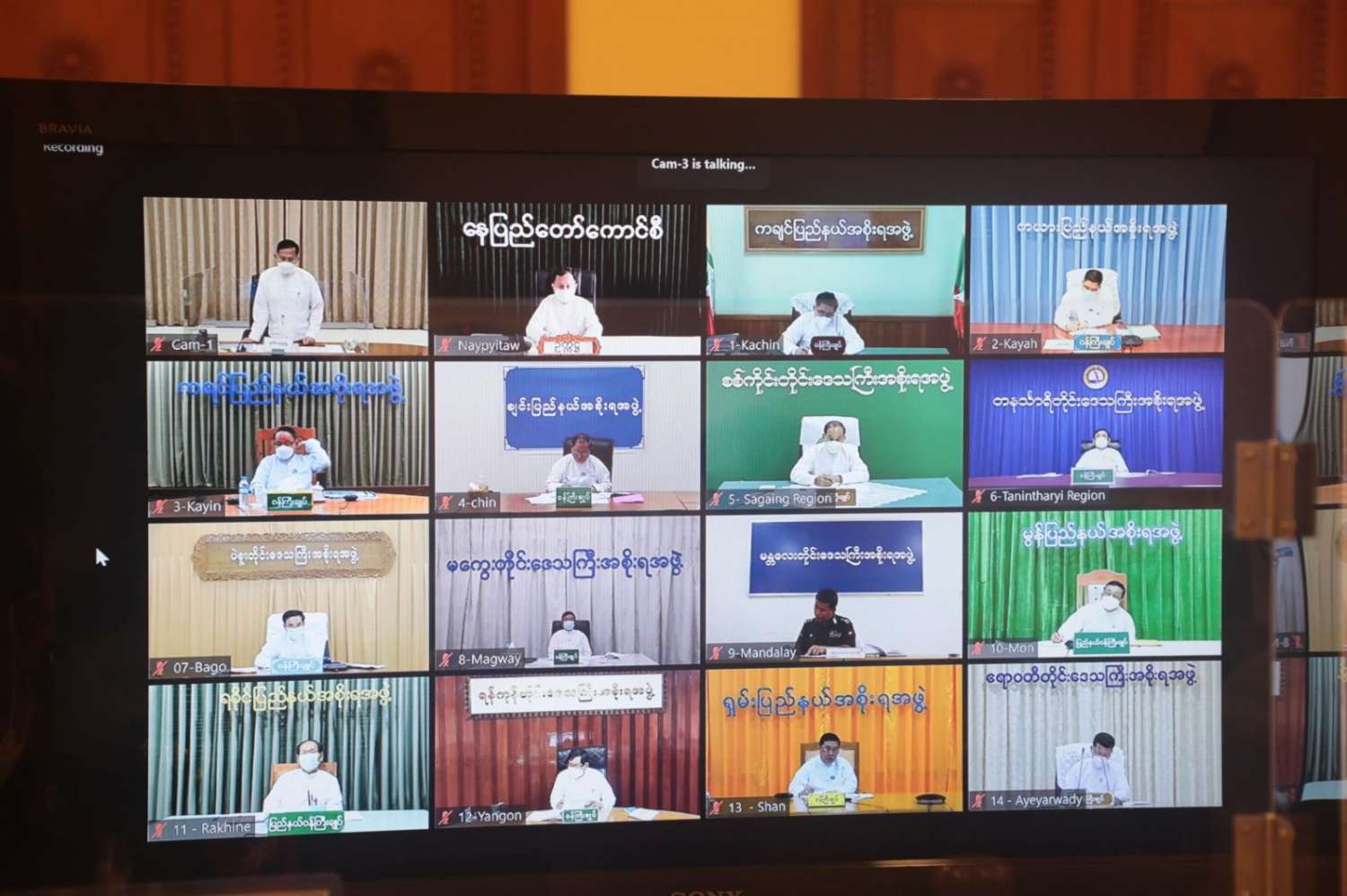 အစည်းအဝေးသို့ ပြည်ထောင်စုရွေးကောက်ပွဲကော်မရှင် ဥက္ကဋ္ဌ ဦးသိန်းစိုး၊ ပြည်ထောင်စုဝန်ကြီးများ ဖြစ်ကြသည့် ဒုတိယဗိုလ်ချုပ်ကြီး စိုးထွဋ်၊ ဦးခင်ရီနှင့် ဒေါက်တာမျိုးသိန်းကျော်၊ ပြည်ထောင်စုရွေးကောက်ပွဲ ကော်မရှင်အဖွဲ့ဝင် ဦးအောင်လွင်ဦး၊ ဒုတိယဝန်ကြီးများ ဖြစ်ကြသည့် ဦးဌေးလှိုင်၊ ဦးဇော်ဝင်းနှင့် ဦးအောင်ထွန်းခိုင်နှင့် တာဝန်ရှိသူများ တက်ရောက်ကြပြီး နေပြည်တော်ကောင်စီဥက္ကဋ္ဌ၊ တိုင်းဒေသကြီးနှင့် ပြည်နယ်ဝန်ကြီးချုပ်များနှင့် တာဝန်ရှိသူများက ဗီဒီယိုကွန့်ဖရင့်ဖြင့် တက်ရောက်ကြသည်။