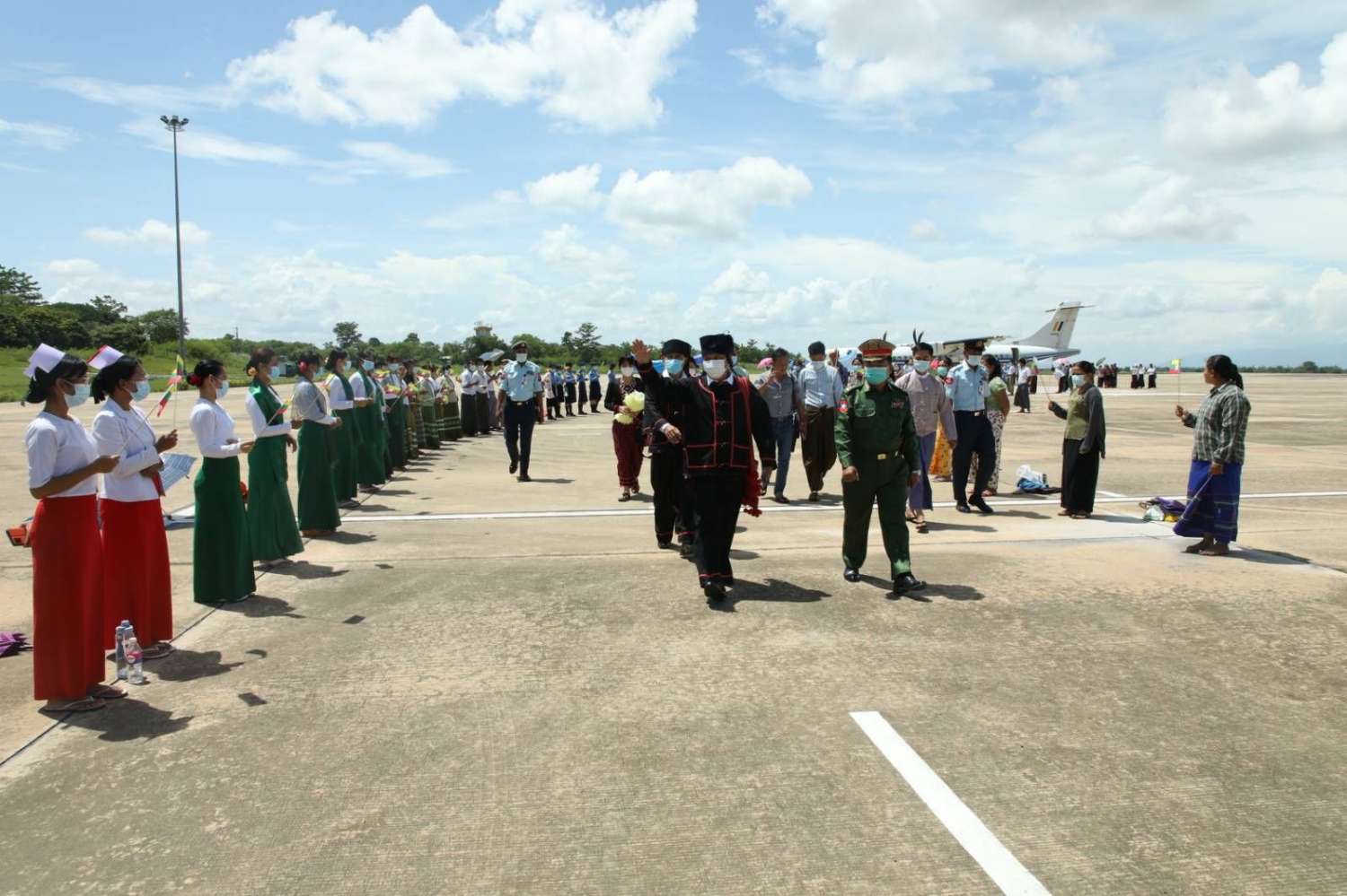 အဆိုပါ ငြိမ်းချမ်းရေးကိုယ်စားလှယ်အဖွဲ့အား တြိဂံဒေသတိုင်းစစ်ဌာနချုပ်၊ တာချီလိတ်တပ်နယ်မှ တာဝန်ရှိသူများ၊ ဌာနဆိုင်ရာ ဝန်ထမ်းများ၊ နိုင်ငံရေးပါတီ အဖွဲ့အစည်းများနှင့် ဒေသခံပြည်သူများက ဂုဏ်ပြုကြိုဆို၍ တာချီလိတ် လေဆိပ်သို့ ပို့ဆောင် နှုတ်ဆက်ကြသည်။