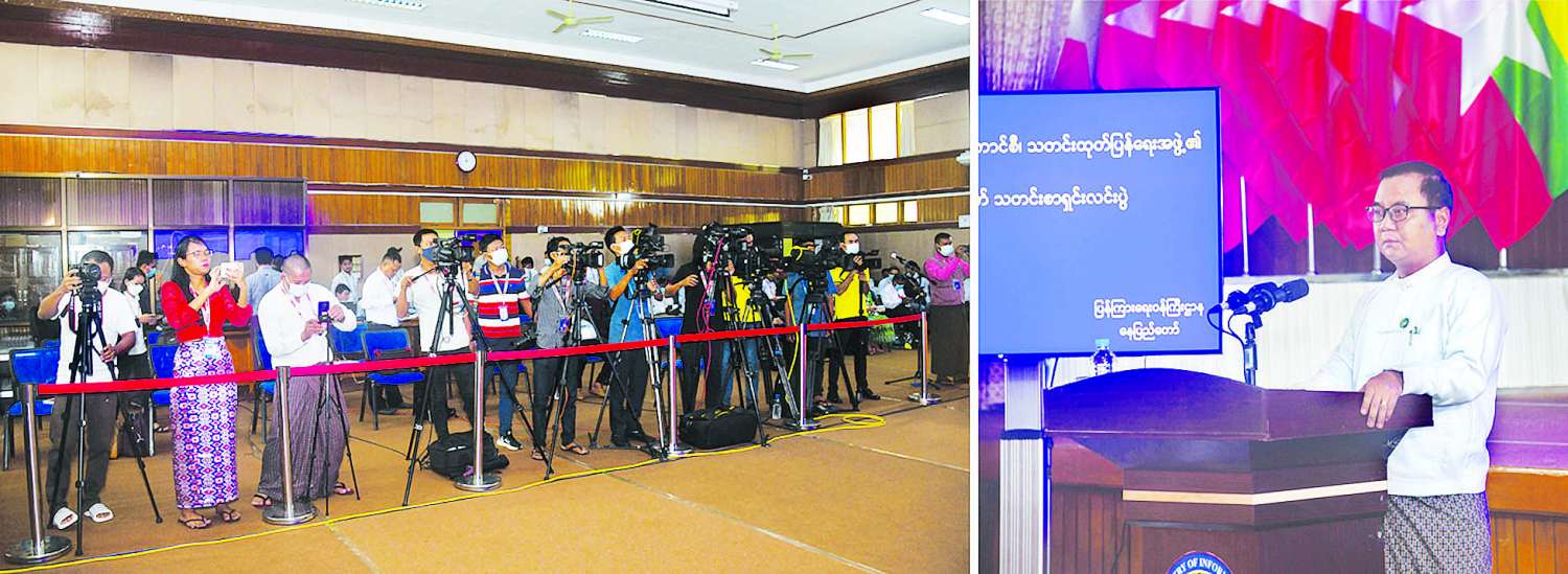နိုင်ငံတော်စီမံအုပ်ချုပ်ရေးကောင်စီ၊ သတင်းထုတ်ပြန်ရေးအဖွဲ့၏ (၁၇)ကြိမ်မြောက် သတင်းစာရှင်းလင်းပွဲကို ဇူလိုင် ၁ ရက်မွန်းလွဲပိုင်းက ပြန်ကြားရေးဝန်ကြီးဌာန၌ ကျင်းပပြုလုပ်ရာ နိုင်ငံတော်စီမံအုပ်ချုပ်ရေးကောင်စီ၊ သတင်းထုတ်ပြန်ရေးအဖွဲ့ခေါင်းဆောင် ဗိုလ်ချုပ်ဇော်မင်းထွန်း၊ ပြည်ထောင်စုရွေးကောက်ပွဲကော်မရှင်အဖွဲ့ဝင် ဦးခင်မောင်ဦး၊ ဌာနဆိုင်ရာများမှ ပြောရေးဆိုခွင့်ရှိသူများနှင့် ဌာနဆိုင်ရာသတင်းထုတ်ပြန်ရေးအဖွဲ့ ကိုယ်စားလှယ်များက သတင်းမီဒီယာများ၏ သိရှိလိုသည့် မေးမြန်းမှုများကို ပြန်လည်ဖြေကြားသည်။