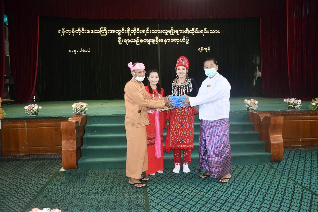 ယင်းနောက် နှီးနှောဖလှယ်ပွဲသို့ တက်ရောက်လာကြသည့် တိုင်းရင်းသားစာပေနှင့် ယဉ်ကျေးမှုအဖွဲ့များကို ပြည်ထောင်စုဝန်ကြီး၊ တိုင်းဒေသကြီးအစိုးရအဖွဲ့ဝန်ကြီးချုပ်နှင့် ဒုတိယဝန်ကြီးတို့က ထောက်ပံ့ငွေများ ပေးအပ်သည်။ ထို့နောက် ရန်ကုန်တိုင်းဒေသကြီးအတွင်းမှာရှိ တိုင်းရင်းသားလူငယ်များ နည်းပညာဖွံ့ဖြိုးတိုးတက်လာစေရေး ရည်ရွယ်ဖွင့်လှစ်မည့် ကွန်ပျူတာသင်တန်းများ၌ အသုံးပြုနိုင်ရန်အတွက် ရန်ကုန်တိုင်းဒေသကြီးအစိုးရအဖွဲ့၏ နည်းပညာအကြံပေး IT ပညာရှင် ဦးလင်းဦးက DELL Laptop အလုံး (၂၀)ကို ရန်ကုန်တိုင်းဒေသကြီးအစိုးရအဖွဲ့ တိုင်းရင်းသားရေးရာဝန်ကြီး ဦးစောဂျက်ကော့ထူးထံ ပေးအပ်ပြီး တိုင်းရင်းသားရေးရာဝန်ကြီးက ဂုဏ်ပြုမှတ်တမ်းလွှာ ပြန်လည်ပေးအပ်သည်။ ယင်းနောက် ပြည်ထောင်စုတိုင်းရင်းသားကျေးရွာ (ရန်ကုန်)မှ ယဉ်ကျေးမှုအကအဖွဲ့များနှင့် ရှမ်းစာပေနှင့်ယဉ်ကျေးမှုအကအဖွဲ့တို့က တိုင်းရင်းသားရိုးရာအကများဖြင့် ဖျော်ဖြေကြသည်။