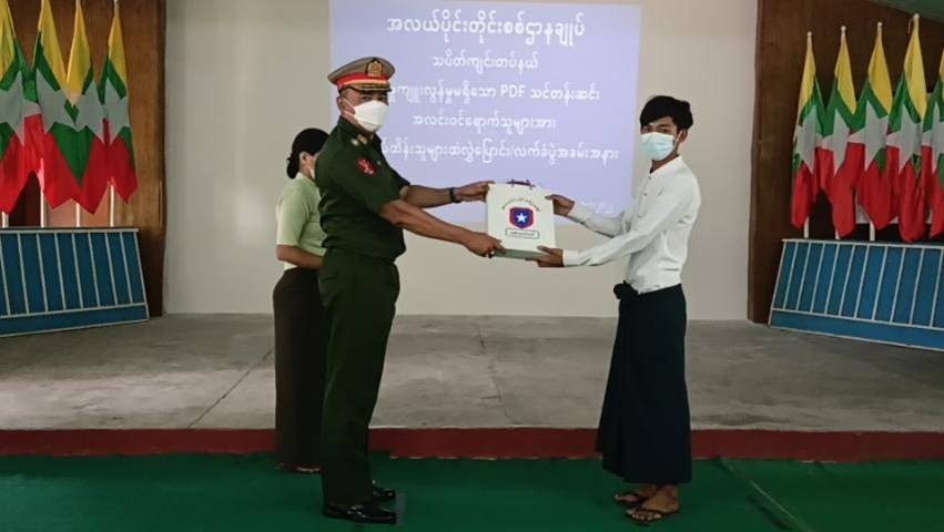 PDF အပါအဝင် အဖွဲ့အစည်းအမျိုးမျိုးတို့အနေဖြင့် နိုင်ငံတော်၏ ရှေ့လုပ်ငန်းစဉ်များတွင် ပါဝင်ပူးပေါင်းဆောင်ရွက်နိုင်ရေး သတ်မှတ်စည်းကမ်းချက်များနှင့်အညီ ဥပဒေဘောင်အတွင်းသို့ လက်နက်အပ်နှံပြီး ပြည်သူ့ဘဝသို့ ပြန်လည်ဝင်ရောက်ခြင်းပြုမည်ဆိုပါက ကြိုဆိုလက်ခံသွားမည်ဖြစ်ကြောင်း နိုင်ငံတော်အစိုးရက ထုတ်ပြန်ထားပြီးဖြစ်ရာ ပြစ်မှုကျူးလွန်ခဲ့ခြင်းမရှိသော PDF အဖွဲ့ဝင်များက တိုင်းဒေသကြီးနှင့် ပြည်နယ်အသီးသီး၌ ဥပဒေဘောင်အတွင်း ပြန်လည်ဝင်ရောက်လျက်ရှိကြသဖြင့် သက်ဆိုင်ရာတာဝန်ရှိသူများက ၎င်းတို့၏ မိဘအုပ်ထိန်းသူများထံသို့ လွှဲပြောင်းအပ်နှံပေးလျက်ရှိကြောင်း သတင်းရရှိသည်။