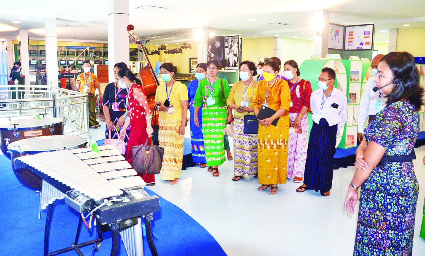 အဆိုပါ လေ့လာရေးအဖွဲ့ဝင်များသည် ရှေးဦးစွာ မြန်မာ့အသံနှင့်ရုပ်မြင်သံကြား စိန်ရတုပြတိုက်အတွင်း ခင်းကျင်းပြသထားသည့် ခေတ်အဆက်ဆက် ရုပ်သံထုတ်လွှင့်မှုများတွင် အသုံးပြုခဲ့သည့် စက်ပစ္စည်းများ၊ တိုက်ရိုက်ထုတ်လွှင့်ရေး မော်တော်ယာဉ်များ၊ သတင်းတင်ဆက်မှုပုံစံငယ်များ၊ ခေတ်အဆက်ဆက် ထုတ်လွှင့်တင်ဆက်ခဲ့သည့် အစီအစဉ်များတွင် ပါဝင်ဆောင်ရွက်ခဲ့သူများ၏ မှတ်တမ်းဓာတ်ပုံများ၊ တူရိယာပစ္စည်းများ၊ သတင်းစတူဒီယိုခန်းများ၊ ရေဒီယိုအစီအစဉ်တွင် အသုံးပြုခဲ့သည့် ခေတ်ဟောင်းဓာတ်ပြားများနှင့် အခြားအသုံးအဆောင်ပစ္စည်းများ စသည့် စုစုပေါင်းပြခန်း ၄၀ တွင် ခင်းကျင်းပြသထားမှုများအပြင် ပင်မအဆောက်အအုံအတွင်း ရုပ်သံထုတ်လွှင့်မှုလုပ်ငန်းများအား လှည့်လည်ကြည့်ရှုလေ့လာကြရာ တာဝန်ရှိသူများက ရှင်းလင်းဖြေကြားကြောင်း သိရသည်။