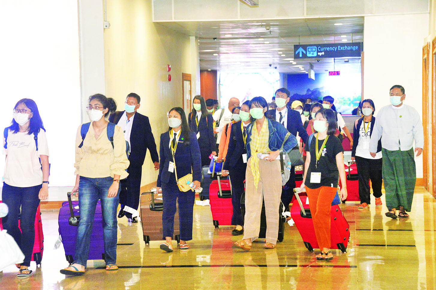 နိုင်ငံတော်စီမံအုပ်ချုပ်ရေးကောင်စီဥက္ကဋ္ဌ နိုင်ငံတော်ဝန်ကြီးချုပ် လမ်းညွှန်ချက်အရ ဇူလိုင် ၄ ရက်မှ ၈ ရက်အထိ ထိုင်းနိုင်ငံနှင့် စင်ကာပူနိုင်ငံသို့ လေ့လာရေးခရီး သွားရောက်ခဲ့သည့် ၂၀၂၂ ခုနှစ် တက္ကသိုလ်ဝင်စာမေးပွဲ ထူးချွန်ကျောင်းသား ကျောင်းသူအဖွဲ့သည် ယမန်နေ့ည ၁၀ နာရီတွင် ရန်ကုန်မြို့သို့ ပြန်လည်ရောက်ရှိရာ ပညာရေးဝန်ကြီးဌာန တာဝန်ရှိသူများနှင့် ကျောင်းသားမိဘများက ရန်ကုန်အပြည်ပြည်ဆိုင်ရာလေဆိပ်၌ နွေးထွေးစွာ ကြိုဆိုခဲ့ကြပြီး ယနေ့တွင် ထူးချွန်ကျောင်းသား ကျောင်းသူများကို မိဘရပ်ထံ ပြန်လည်ပို့ဆောင်ပေးခဲ့သည်။