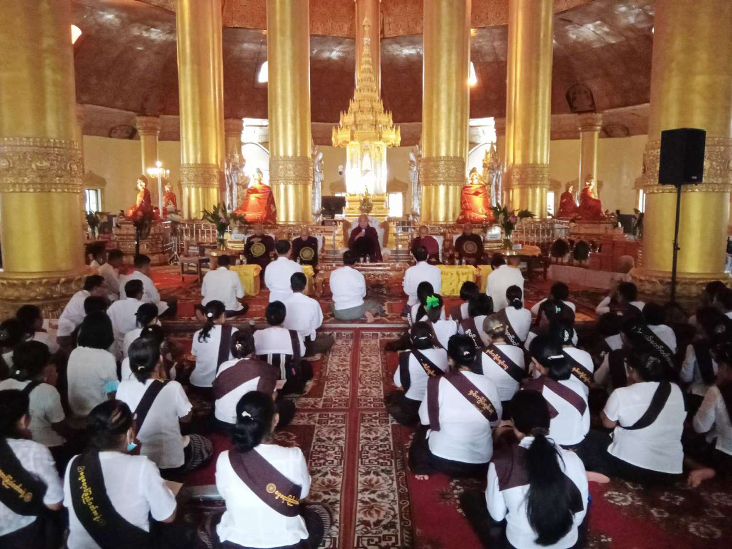 အခမ်းအနားတွင် နိုင်ငံတော်သံဃမဟာနာယကအဖွဲ့ ဒုတိယဥက္ကဋ္ဌ ဆရာတော်အဂ္ဂ မဟာပဏ္ဍိတ အဂ္ဂမဟာသဒ္ဓမ္မဇောတိကဓဇ ဘဒ္ဒန္တကောဝိဒထံမှ ဂေါပကအဖွဲ့များ၊ ဘာသာရေးဝတ်အသင်းအဖွဲ့များက ငါးပါးသီလခံယူ ဆောက်တည်ကြပြီး ဆရာတော် သံဃာတော်အရှင်မြတ်တို့ ချီးမြင့်တော်မူသည့် အန္တရာယ်ကင်းပရိတ်တရားတော်များကို နာယူကြသည်၊၊
