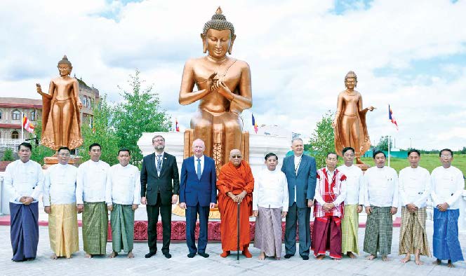 ထို့အပြင် ရုရှားနိုင်ငံနှင့် ယဉ်ကျေးမှုပူးပေါင်းဆောင်ရွက်မှုအနေဖြင့် ၂၀၁၅ ခုနှစ်တွင် မြန်မာထေရဝါဒဗုဒ္ဓစင်တာ ကျောင်းတော်ကြီးကို တည်ထောင်နိုင်ခဲ့ကြောင်း၊ ရုရှားနိုင်ငံမှ ဗုဒ္ဓဘာသာဝင်များ တရားအားထုတ်နိုင်ရန်အတွက် ၂၀၁၈ ခုနှစ်တွင် မြန်မာ့တပ်မတော် (ကြည်း၊ ရေ၊ လေ) မိသားစုများ၏ လှူဒါန်းမှုဖြင့် သဒ္ဓမ္မဇောတိက သိမ်တော်ကြီးနှင့် ရွှေတိဂုံစေတီ ပုံတူအထွတ်တင်စေတီကို မြန်မာနိုင်ငံမှ သံဃာတော်အရှင်သူမြတ်များ ပင့်ဆောင်၍ ပန္နက်ချမင်္ဂလာဆောင်ရွက်နိုင်ခဲ့ကြောင်း၊ ၂၀၂၁ ခုနှစ် ဇွန်လတွင် မိမိနှင့်အတူ အစိုးရအဖွဲ့ကိုယ်စားလှယ်များက ရွှေတိဂုံစေတီပုံတူ အထွတ်တင်စေတီကို ရတနာစိန်ဖူးတော်၊ ငှက်မြတ်နားတော် တင်လှူပူဇော်ခဲ့ပြီး သဒ္ဓမ္မ ဇောတိက သိမ်တော်ကြီးကို ရေစက်ချလှူဒါန်းနိုင်ခဲ့ပါကြောင်း။