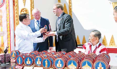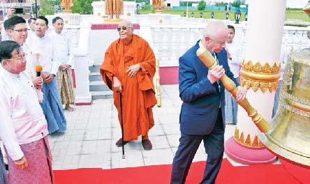 ၎င်းနောက် ETHNOMIR ကမ္ဘာ့ယဉ်ကျေးမှုမြို့တော်ရှိ ရွှေစည်းခုံပုံတူ စေတီတော်ကြီး ရတနာစိန်ဖူးတော်၊ ငှက်မြတ်နားတော် တင်လှူပူဇော်ပွဲနှင့် ဗုဒ္ဓါဘိသေက အနေကဇာတင် မဟာမင်္ဂလာ အခမ်းအနားအောင်ပွဲ အထိမ်းအမှတ်နှင့် ကမ္ဗည်းမော်ကွန်းကျောက်စာကို ဖဲကြိုးဖြတ်ဖွင့်လှစ်ပြီး အမွှေးနံ့သာရည်များဖြင့် ပက်ဖျန်းပူဇော်ကြသည်။