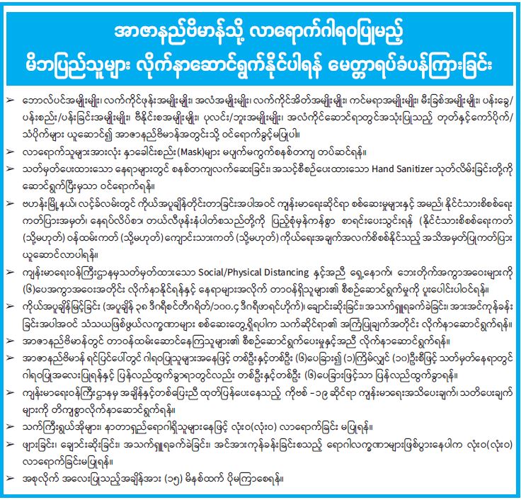 အာဇာနည်ဗိမာန်သို့ လာရောက်ဂါရဝပြုမည့် မိဘပြည်သူများ လိုက်နာဆောင်ရွက်နိုင်ပါရန် မေတ္တာရပ်ခံပန်ကြားခြင်း