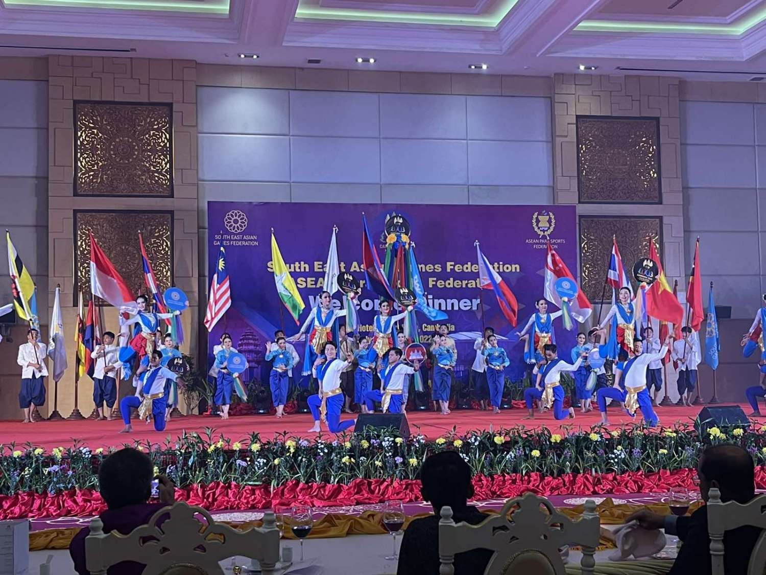 ညနေပိုင်းတွင် Sokha ဟိုတယ်၌ ကမ္ဘောဒီးယားနိုင်ငံ ဒုတိယဝန်ကြီးချုပ်၊ ကာကွယ်ရေးဝန်ကြီး၊ (၃၂)ကြိမ်မြောက် အရှေ့တောင်အာရှ အားကစားပြိုင်ပွဲ ကျင်းပရေးကော်မတီဥက္ကဋ္ဌက တည်ခင်းဧည့်ခံသည့် ညစာစားပွဲအခမ်းအနားသို့ ပြည်ထောင်စုဝန်ကြီး ဦးဆောင်သောအဖွဲ့သည် အာဆီယံအဖွဲ့ဝင် (၁၁)နိုင်ငံမှ ကိုယ်စားလှယ်များနှင့်အတူ တက်ရောက်ခဲ့ကြသည်။