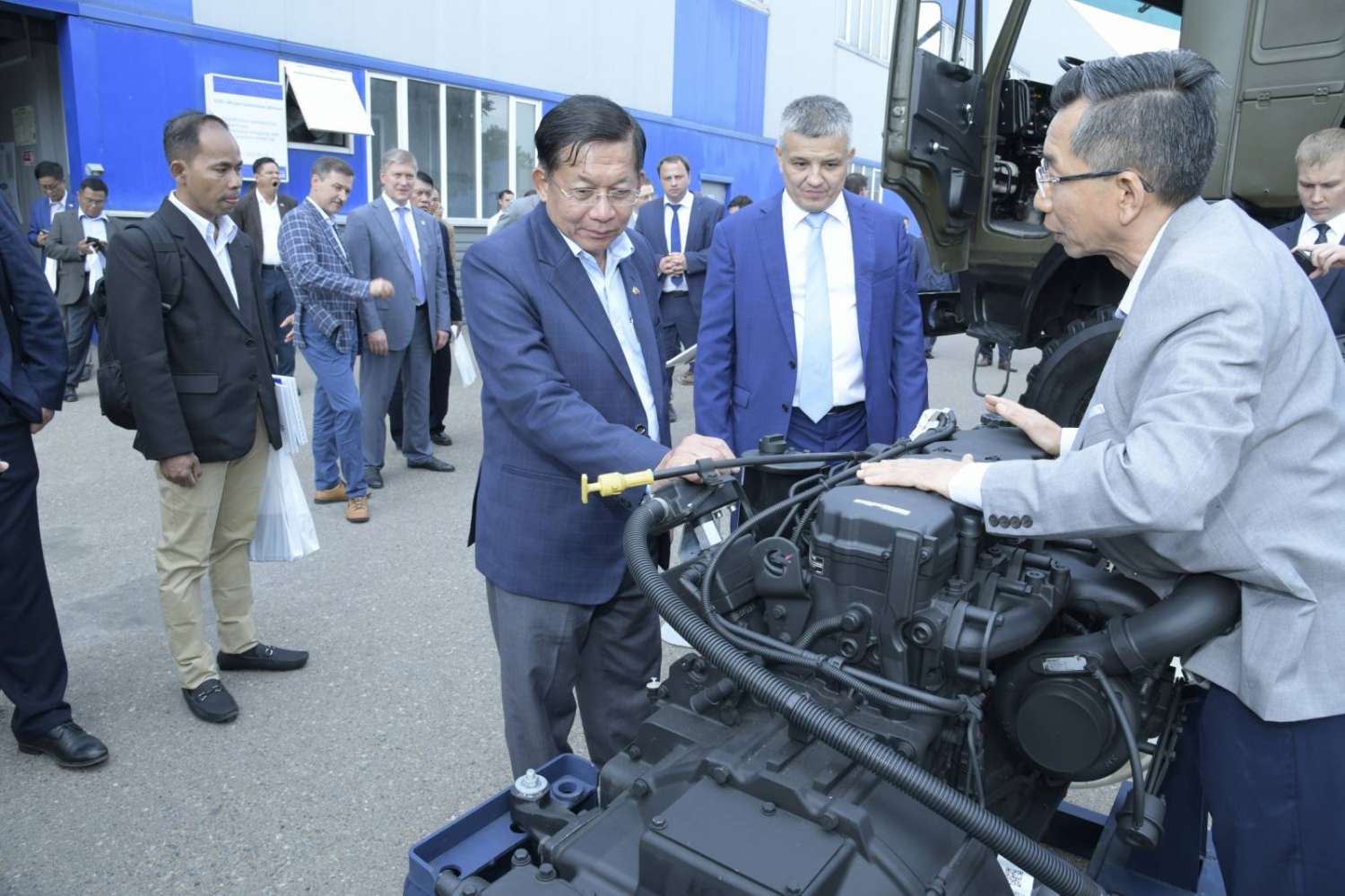 ယင်းနောက် နိုင်ငံတော်စီမံအုပ်ချုပ်ရေး ကောင်စီဥက္ကဋ္ဌ၊ နိုင်ငံတော်ဝန်ကြီးချုပ်နှင့် အဖွဲ့ဝင်များသည် စိုက်ပျိုးရေးလုပ်ငန်းများတွင် အသုံးပြုသည့် UAV ထုတ်လုပ်ရေး အလုပ်ရုံ၊ စစ်ဘက်သုံး သယ်ယူပို့ဆောင်ရေးနှင့် စစ်မြေပြင်သုံးကျည်ကာ ပို့ဆောင်ရေးယာဉ်၊ အင်ဂျင်များ ထုတ်လုပ်ထားရှိမှုတို့ ကြည့်ရှုလေ့လာကြရာ နိုင်ငံတော်စီမံအုပ်ချုပ်ရေး ကောင်စီဥက္ကဋ္ဌ၊ နိုင်ငံတော်ဝန်ကြီးချုပ်အား မော်တော်ယာဉ် ထုတ်လုပ်ရေးလုပ်ငန်းမှ အမှတ်တရ လက်ဆောင်ပစ္စည်း ပေးအပ်သည်။