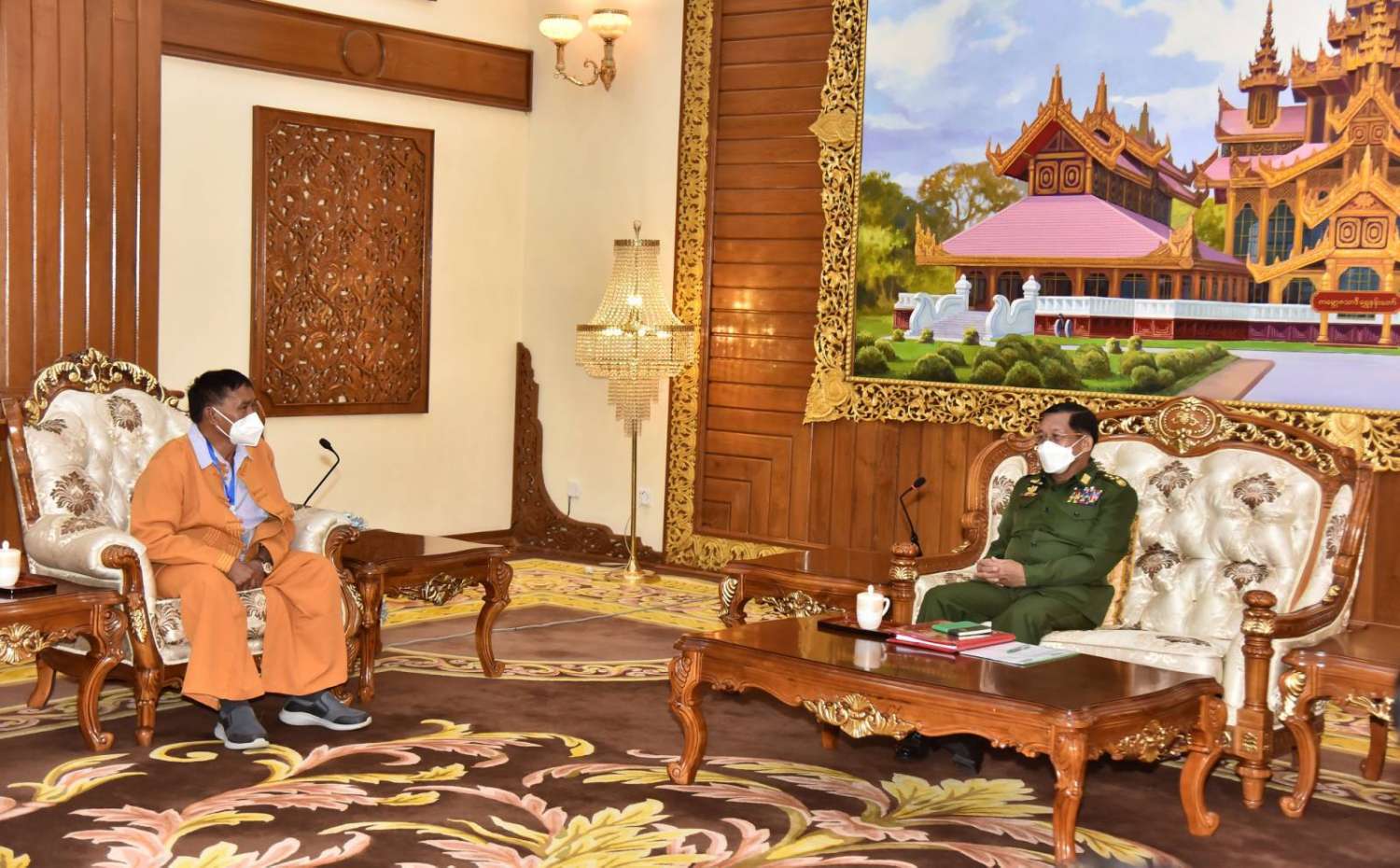 ယင်းနောက် နိုင်ငံတော်စီမံအုပ်ချုပ်ရေးကောင်စီဥက္ကဋ္ဌ တပ်မတော်ကာကွယ်ရေးဦးစီးချုပ်က တပ်မတော်သည် တိုင်းပြည်ကိုထိန်းသိမ်းစောင့်ရှောက်သူ (Guardian) အဖြစ် ဆက်လက် ဆောင်ရွက်သွားမည်ဖြစ်ပြီး ဥပဒေနှင့်အညီ ဆောင်ရွက်လျက်ရှိသည့် အခြေအနေများ၊ တိုင်းရင်းသားအဖွဲ့များအနေဖြင့်လည်း ဒီမိုကရေစီနှင့် ဖက်ဒရယ်အခွင့်အရေးကို ရရှိရန်အတွက် တရားဥပဒေနှင့်အညီ၊ စည်းကမ်းနှင့်အညီ၊ ဒီမိုကရေစီကျင့်စဉ်နှင့်အညီ လုပ်ကိုင် ဆောင်ရွက်ကြရန်လိုသည့် အခြေအနေများနှင့် ပတ်သက်၍ ပြန်လည်ဆွေးနွေး ပြောကြားပြီး ငြိမ်းချမ်းရေးဆိုင်ရာကိစ္စရပ်များ၊ ဒေသဖွံ့ဖြိုးရေးဆိုင်ရာကိစ္စရပ်များနှင့်ပတ်သက်၍ နှစ်ဖက်အမြင်များကို ရင်းနှီးပွင့်လင်းစွာ အပြန်အလှန် ဆွေးနွေးခဲ့ကြသည်။