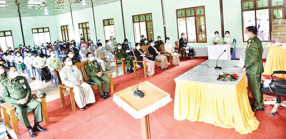 တပ်မတော်ကာကွယ်ရေးဦးစီးချုပ် ဗိုလ်ချုပ်မှူးကြီး မင်းအောင်လှိုင်သည် အဖွဲ့ဝင်များနှင့်အတူ ယမန်နေ့ မွန်းလွဲပိုင်းတွင် ဓနုကိုယ်ပိုင်အုပ်ချုပ်ခွင့်ရဒေသ ရွာငံမြို့နယ် ဆင်နက်ချောင်ကျေးရွာမှ ဒေသခံတိုင်းရင်းသားများအား တွေ့ဆုံ၍ ကျေးရွာစာကြည့်တိုက်အတွက် စာအုပ်စာစောင် များ၊ COVID-19 ရောဂါ ကာကွယ်၊ ထိန်းချုပ်၊ ကုသရေး ပစ္စည်းများနှင့် တပ်မတော်ကာကွယ်ရေးဦးစီးချုပ် ဗိုလ်ချုပ် မှူးကြီး မင်းအောင်လှိုင်၊ ဇနီးဒေါ်ကြူကြူလှနှင့် သားသမီး မြေးများက လှူဒါန်းသည့် ရုပ်မြင်သံကြားပြစက်နှင့် Skynet စက်တစ်စုံတို့အား ပေးအပ်လှူဒါန်းသည်။